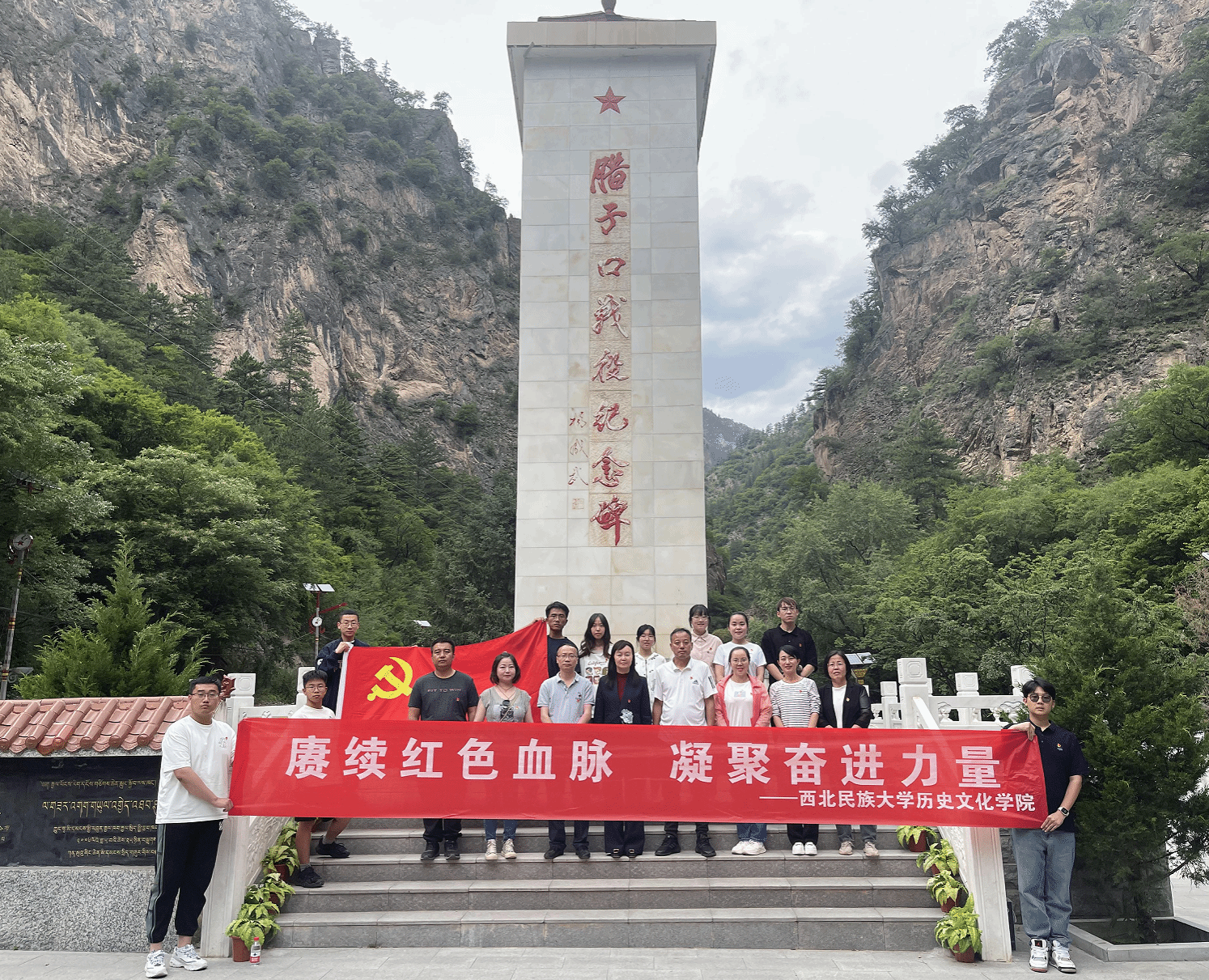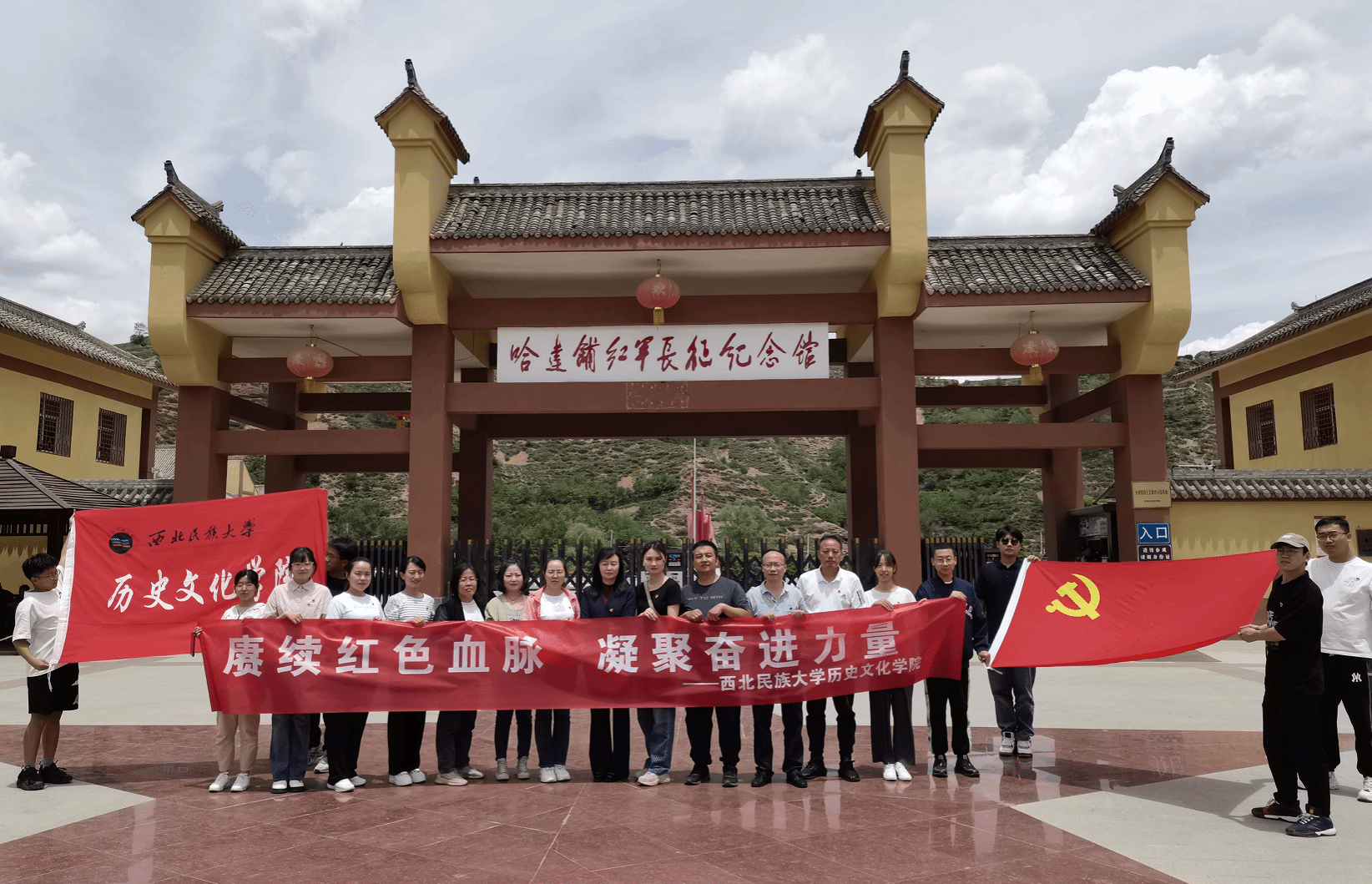 在學(xué)習(xí)貫徹習(xí)近平新時代中國特色社會主義思想主題教育開展之際,歷史文化學(xué)院黨委組織19名師生黨員及積極分子于2023年6月10日-11日赴哈達(dá)鋪紅軍長征紀(jì)念館、臘子口戰(zhàn)役紀(jì)念館開展“賡續(xù)紅色血脈,凝聚奮進力量”主題黨日活動,大力弘揚偉大建黨精神 ,團結(jié)奮斗走好新時代的長征路,深刻領(lǐng)悟哈達(dá)鋪是紅軍長征途中的“加油站”,是紅軍長征的重要轉(zhuǎn)折點的真正含義,從黨的歷史中汲取智慧和力量。