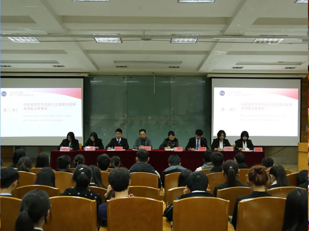 歷史文化學(xué)院第二十六屆學(xué)生代表大會(huì)于2024年10月9日下午19:30在致真樓101教室召開。學(xué)院副院長(zhǎng)趙光國、團(tuán)委書記李皎出席了本次會(huì)議。參加大會(huì)的還有學(xué)院第四十四屆學(xué)生會(huì)主席團(tuán)成員及各班46名學(xué)生代表。