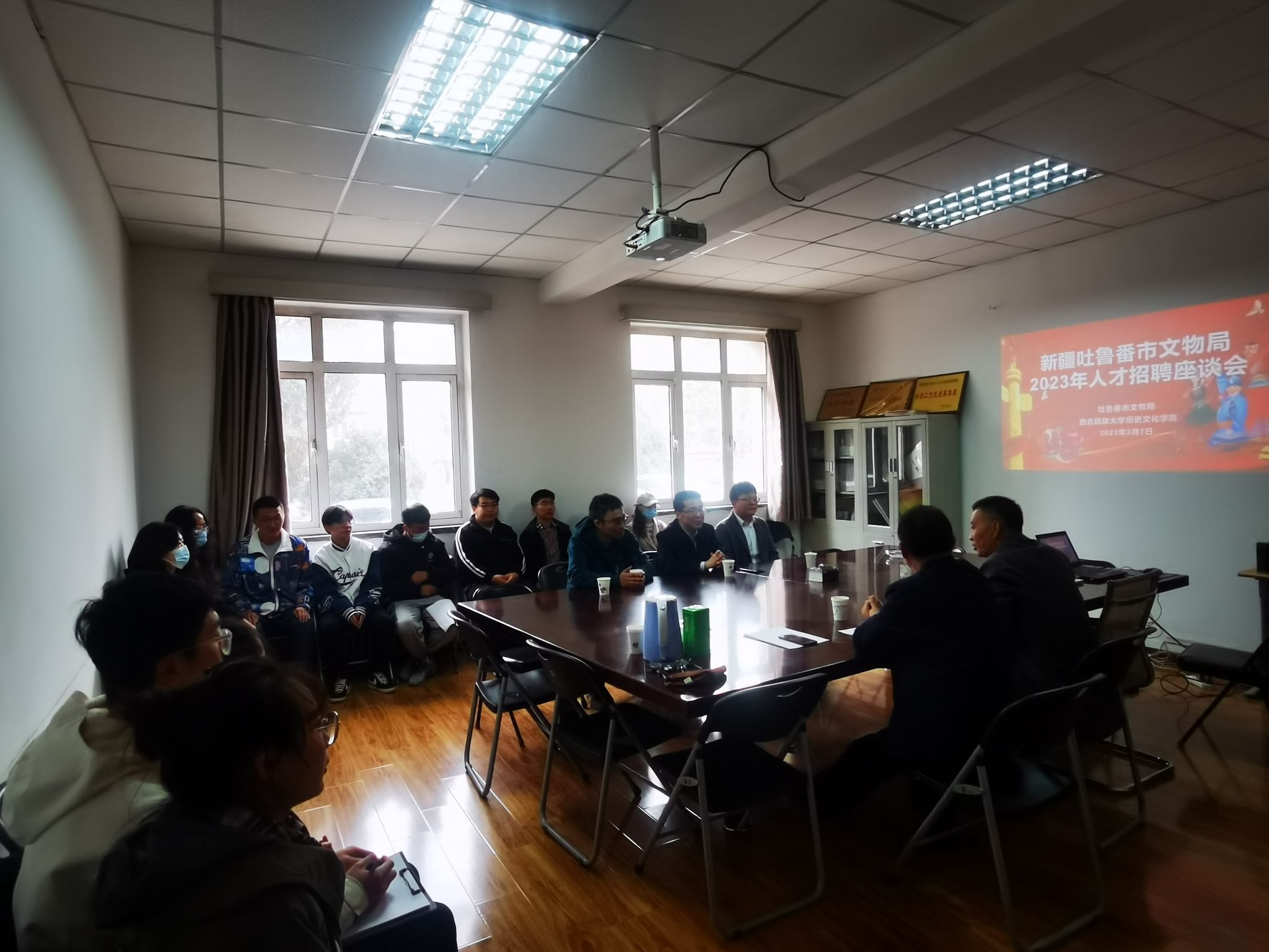 2023年3月7日,應(yīng)學(xué)院邀請(qǐng),新疆吐魯番市文物局黨組書(shū)記、副局長(zhǎng)張勇一行3人蒞臨學(xué)院,成功舉行了吐魯番市文物局2023年人才招聘座談會(huì)。學(xué)院黨委書(shū)記徐志忠、院長(zhǎng)趙學(xué)東及學(xué)院部分2023屆畢業(yè)研究生、本科生參加了座談會(huì)。