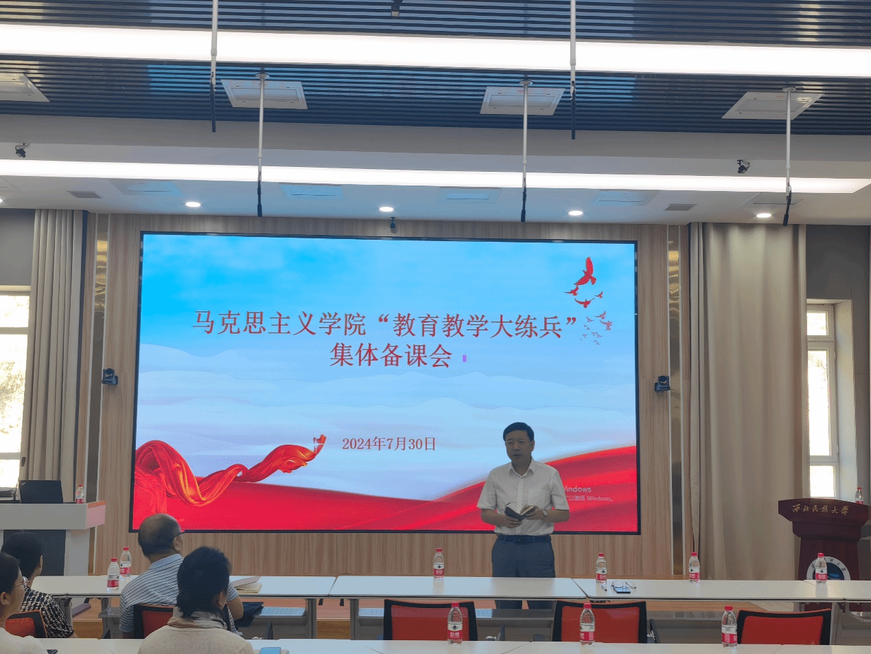 為全面迎接本科教育教學審核評估,推動“以評促建、以評促改、以評促管、以評促強”,落實預評估階段發現問題的整改任務,切實提升教師教育教學水平,提高本科課堂教學質量,馬克思主義學院根據《西北民族大學關于開展本科教育教學審核評估“教育教學大練兵”活動的通知》的相關要求,7月30日、31日學院在留學生公寓四樓會議室開展“教育教學大練兵”跨教研室集體備課、教學觀摩和展示活動。本次活動由副院長寇小麗主持。