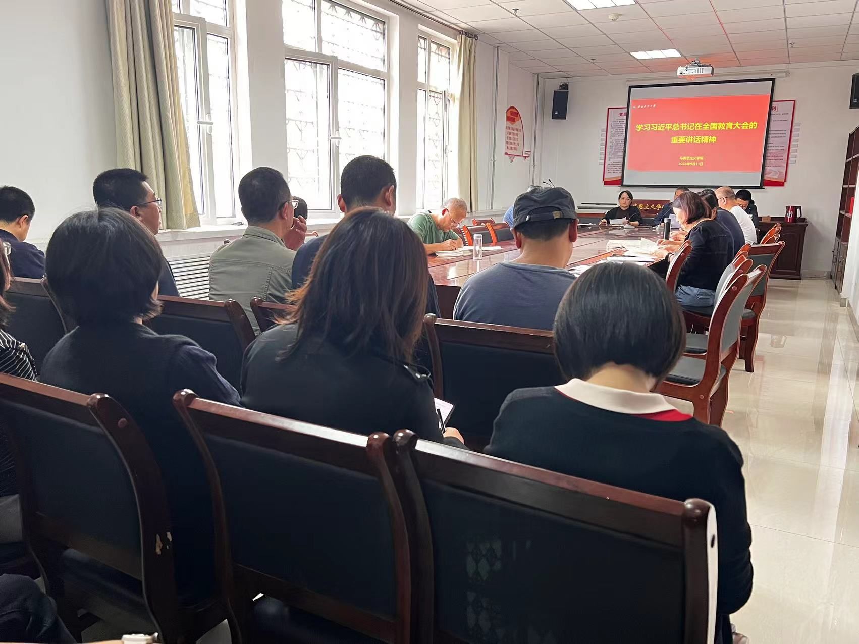 9月11日,學(xué)院召開職工大會(huì)集中學(xué)習(xí)中共中央總書記、國家主席、中央軍委主席習(xí)近平在全國教育大會(huì)重要講話精神。