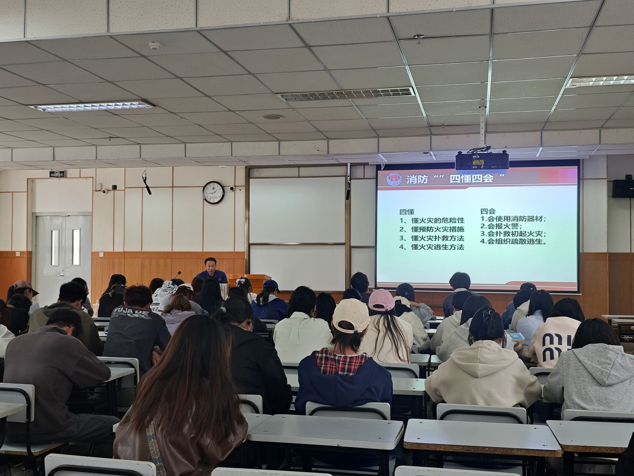 隨后,楊興玉教官通過近年來典型火災案例與數據統計,直觀展現消防隱患的嚴重后果,強調校園火災的突發性與預防必要性。他詳細向同學們介紹了火災的類型、常見的火災原因、蔓延方式、容易引發火災的安全隱患,普及了火災緊急情況的處置以及應急疏散常識,生動闡述了提升消防安全意識的重要性。