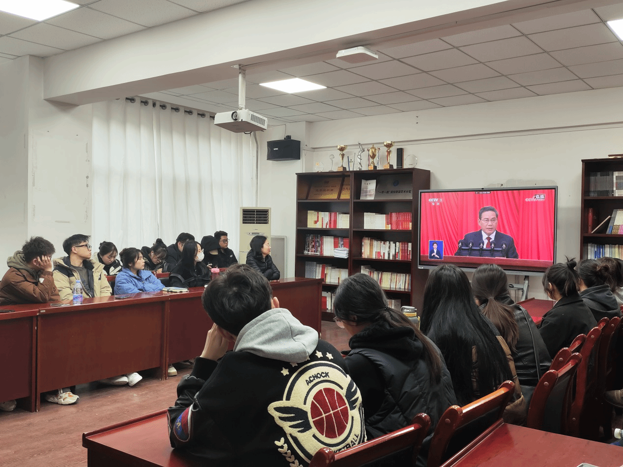2024年3月5日上午9時,十四屆全國人大二次會議在人民大會堂舉行開幕會。國務院總理李強代表國務院,向十四屆全國人大二次會議作政府工作報告。美術學院組織全體學生收看了這一盛況。