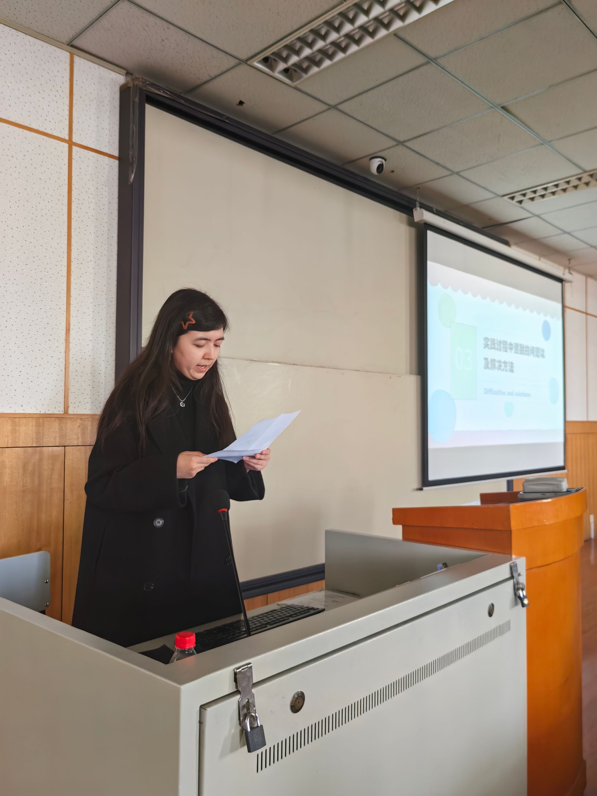 七名參加共青團“返家鄉”社會實踐活動的學生代表用ppt和視頻展示的方式進行實踐分享,講內容講成果,談收獲談心得,用最真誠樸實的語言將自己的所感所悟娓娓道來,和同學們一起分享豐富多彩的實踐經歷。阿依孜巴–買買提同學在社區大廳值班,為困難群眾提供力所能及的幫助,逐漸克服自身怯懦膽小的性格,并參與新疆傳統糕點制作活動,對傳統風俗文化有了進一步的了解;張錦琦同學擔任家鄉社工兩年有余,發揮專業特長教授自閉癥兒童和殘疾兒童畫畫、學習,為自閉癥兒童傳遞了溫暖,也使自己的精神世界更加充裕;余英琪同學在火車站為返鄉人們提供服務,讓回家的路變得溫暖;徐穎同學在家鄉團委辦公綜合部擔任文員,并參與籌備了察右前旗第十六次團代會,綜合素質得到很大提升;龐家平同學參與家鄉青少年事業發展規劃等內容調研,并在大學生救護員專題培訓班順利結業,獲得紅十字會頒發的救護員證……。