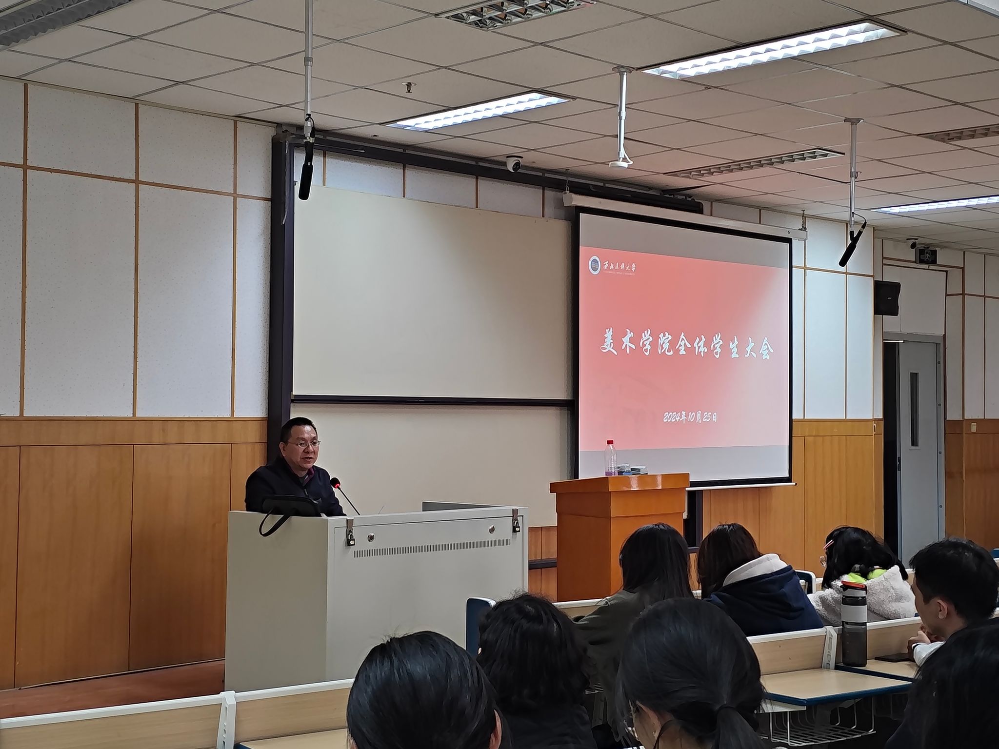 為加強學院學風建設,迎接本科教育教學審核評估, 2024年10月25日,美術學院在文津樓307召開全體學生大會。學院黨委書記蘇知洋、副院長馮炳超及全體學生參加會議,會議由團委書記王媛媛主持。