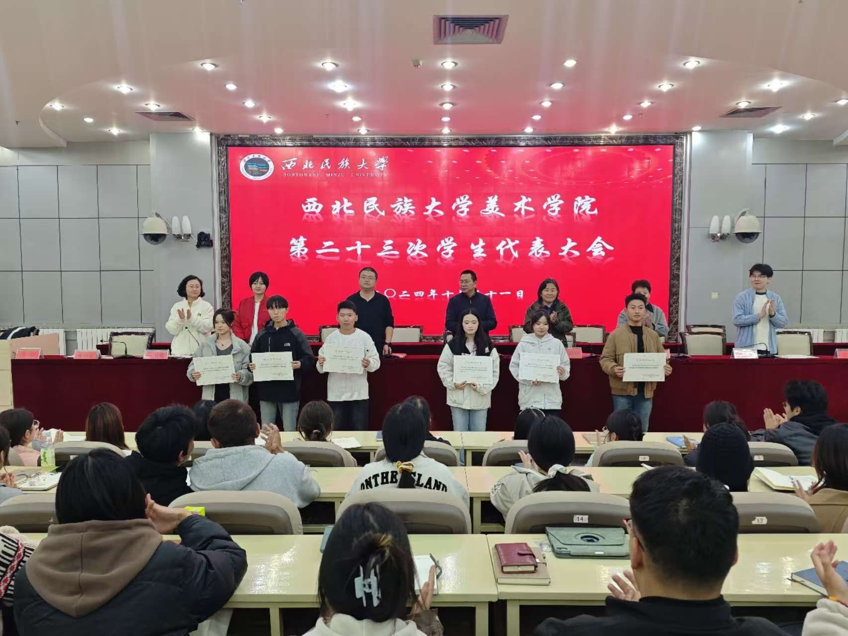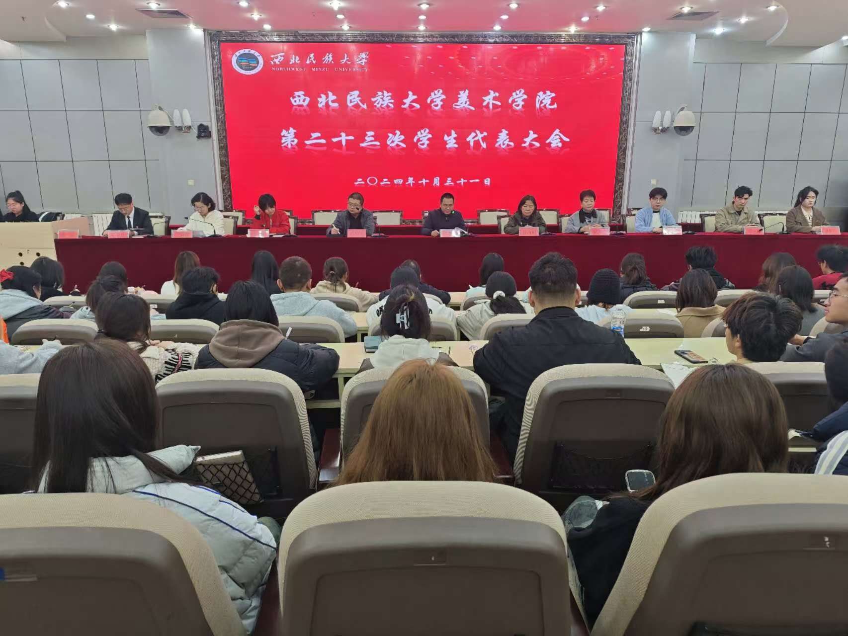 為進一步深化學生會改革,2024年10月31日,美術學院在文津樓學術報告廳召開第二十三次學生代表大會。美術學院黨委書記蘇知洋、院長徐海翔、副書記、副院長鐵英秀、副院長馮炳超、王茜及全體學生代表參加。會議由團委書記王媛媛主持。