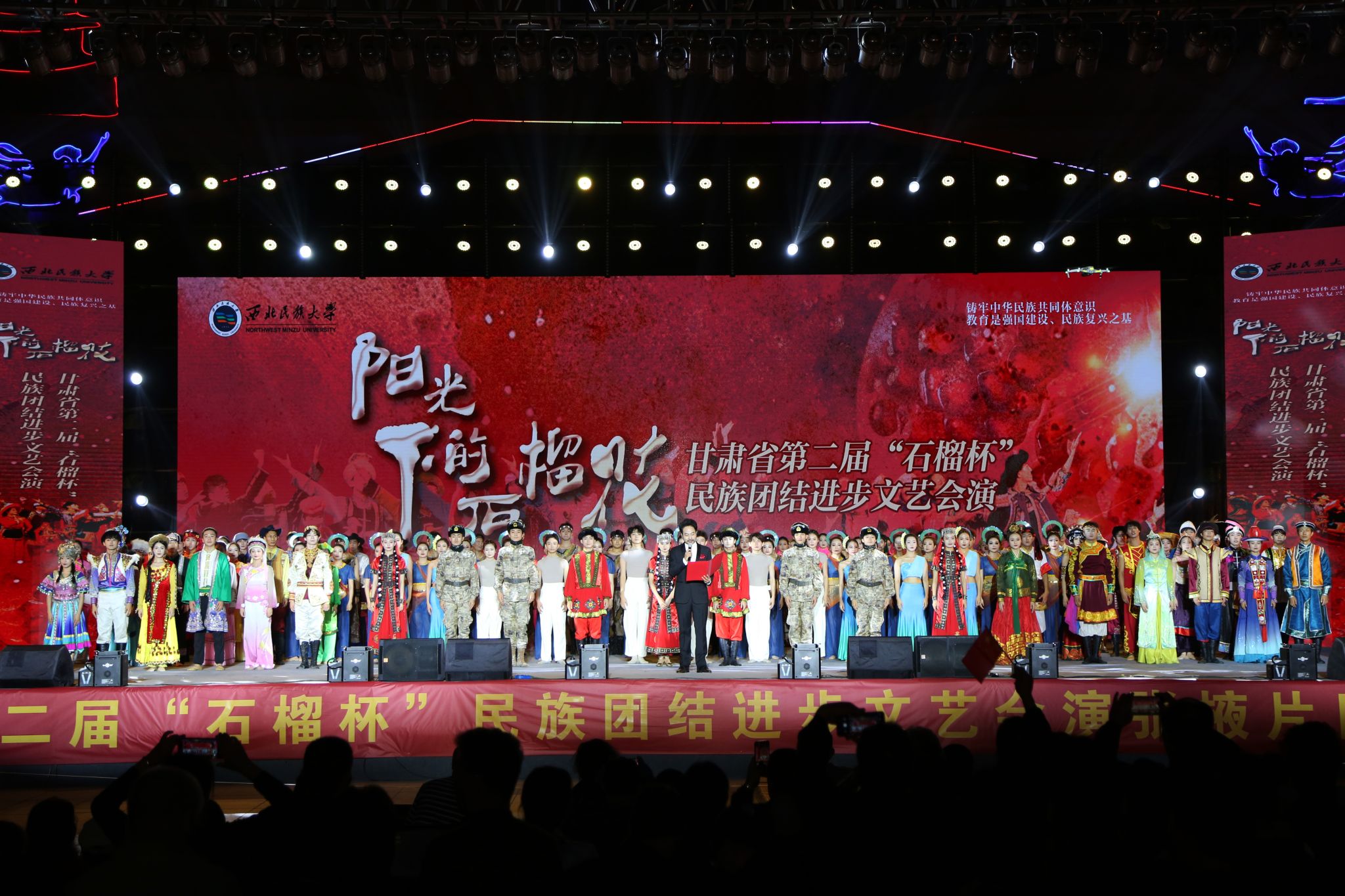 9月22日晚,甘肅省第二屆“石榴杯”民族團結進步文藝會演——西北民族大學舞蹈晚會《陽光下的石榴花》在張掖市中心廣場精彩上演。