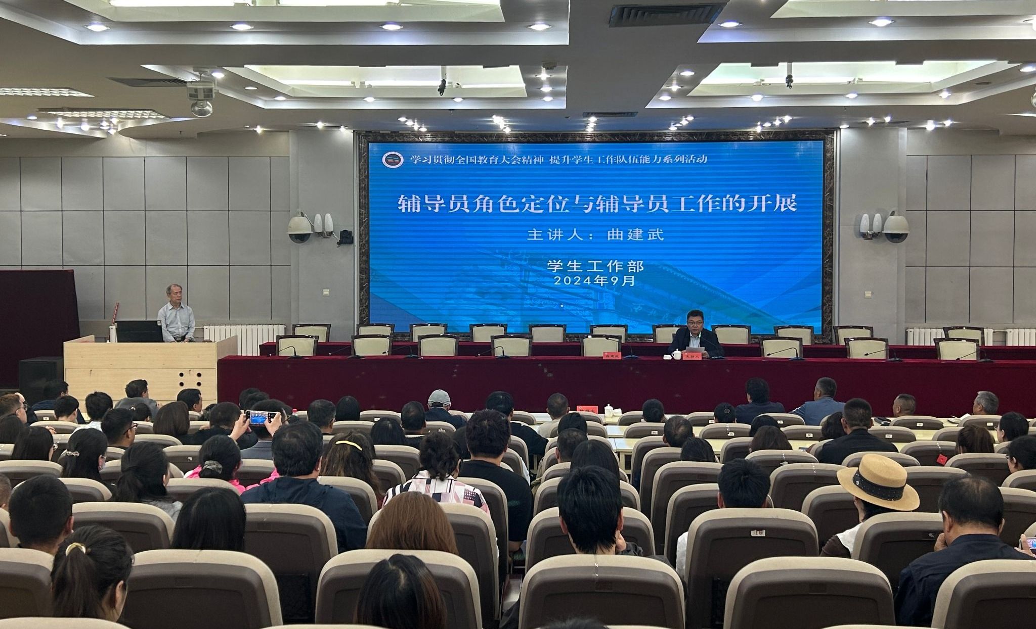 9月23日,“時(shí)代楷模”曲建武教授來(lái)校作《輔導(dǎo)員角色定位與輔導(dǎo)員工作的開(kāi)展》的專題報(bào)告。學(xué)校輔導(dǎo)員、班導(dǎo)師代表近300人參加報(bào)告會(huì)。黨委常委、副校長(zhǎng)徐紹文主持并講話。