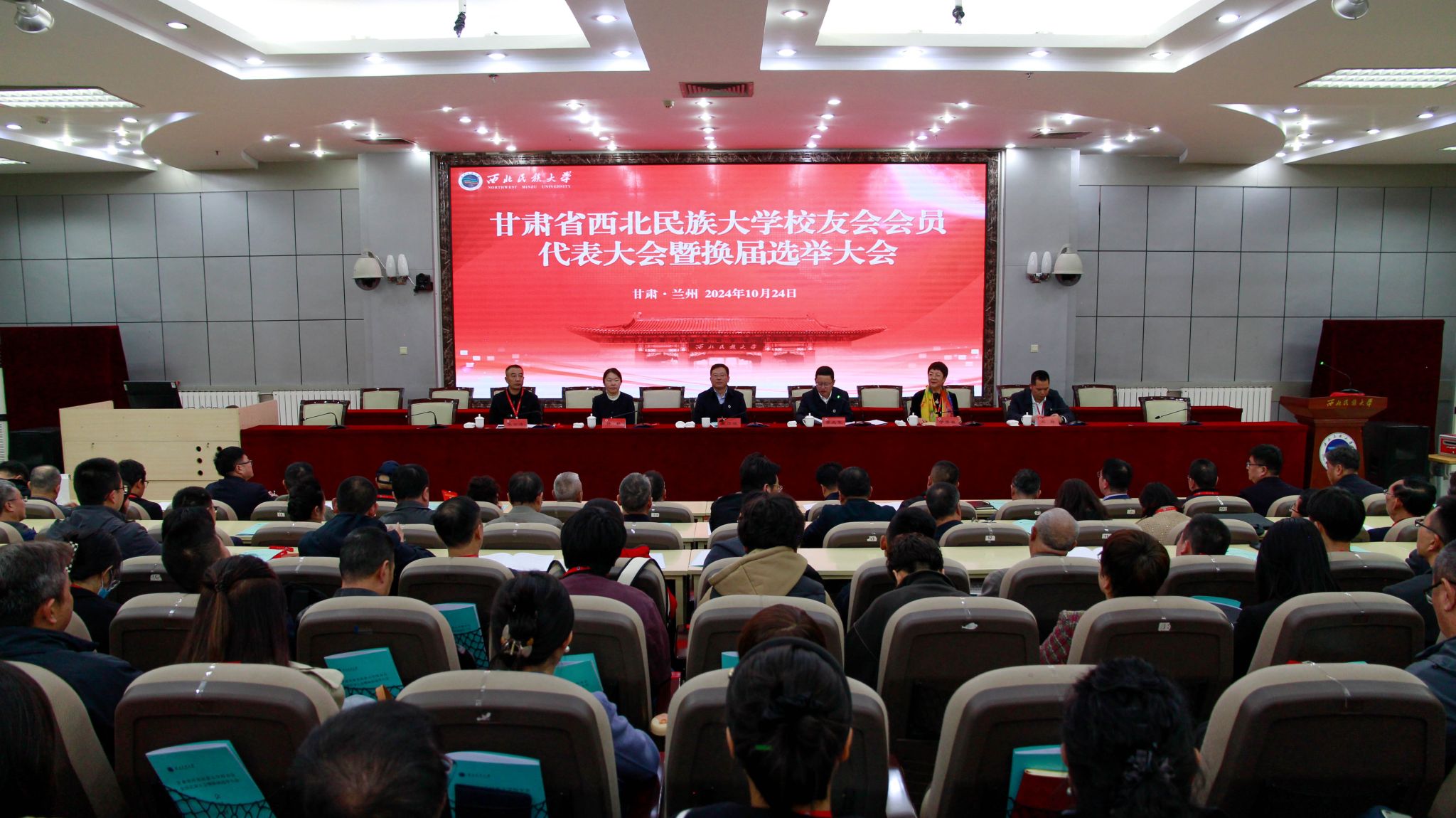 10月24日,甘肅省西北民族大學校友會會員代表大會暨換屆選舉大會在西北新村校區隆重舉行。學校黨委副書記、校長王彥斌,黨委常委、總會計師許林等出席,來自甘肅省民政廳相關部門領導,內蒙古、廣東校友會會長以及在蘭校友代表等120余人參加大會。會議由學校黨委常委、副校長景兆璽主持。
