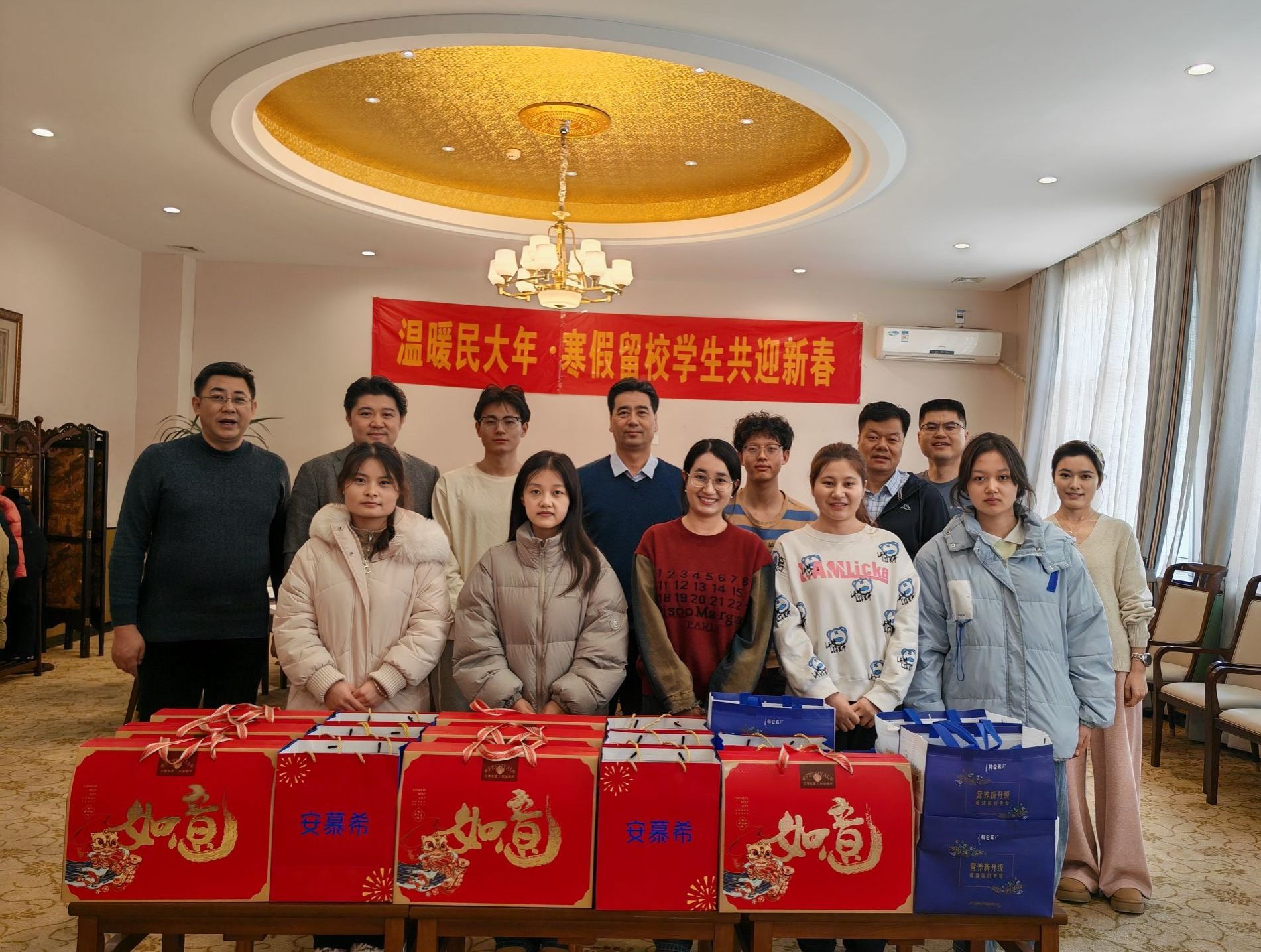 祥龍賀瑞辭舊歲,靈蛇納福迎新春。在乙巳蛇年春節(jié)即將到來的喜慶時刻,學校黨委常委、副校長馬世俊,相關單位負責同志與留校學生歡聚一堂,暢敘情誼,共賀新春。