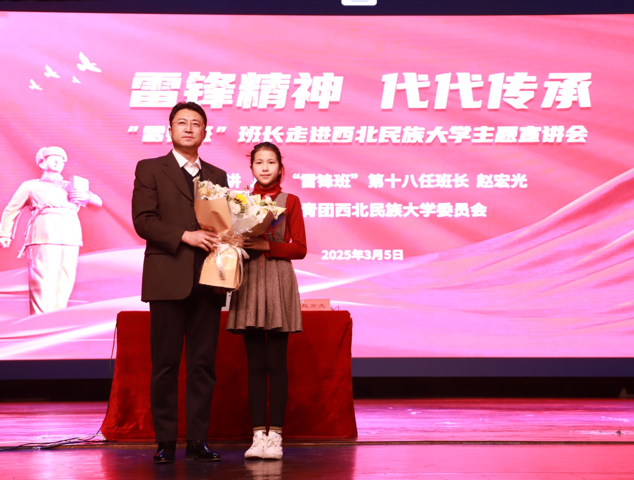 3月5日,在第62個“學雷鋒紀念日”到來之際,學校特別邀請“雷鋒班”第十八任班長趙宏光同志在西北新村校區大禮堂舉辦“雷鋒精神 代代傳承”——“雷鋒班”班長走進西北民族大學主題宣講會,來自各學院(部)、附屬中小學共計1000余名師生代表現場聆聽報告會。