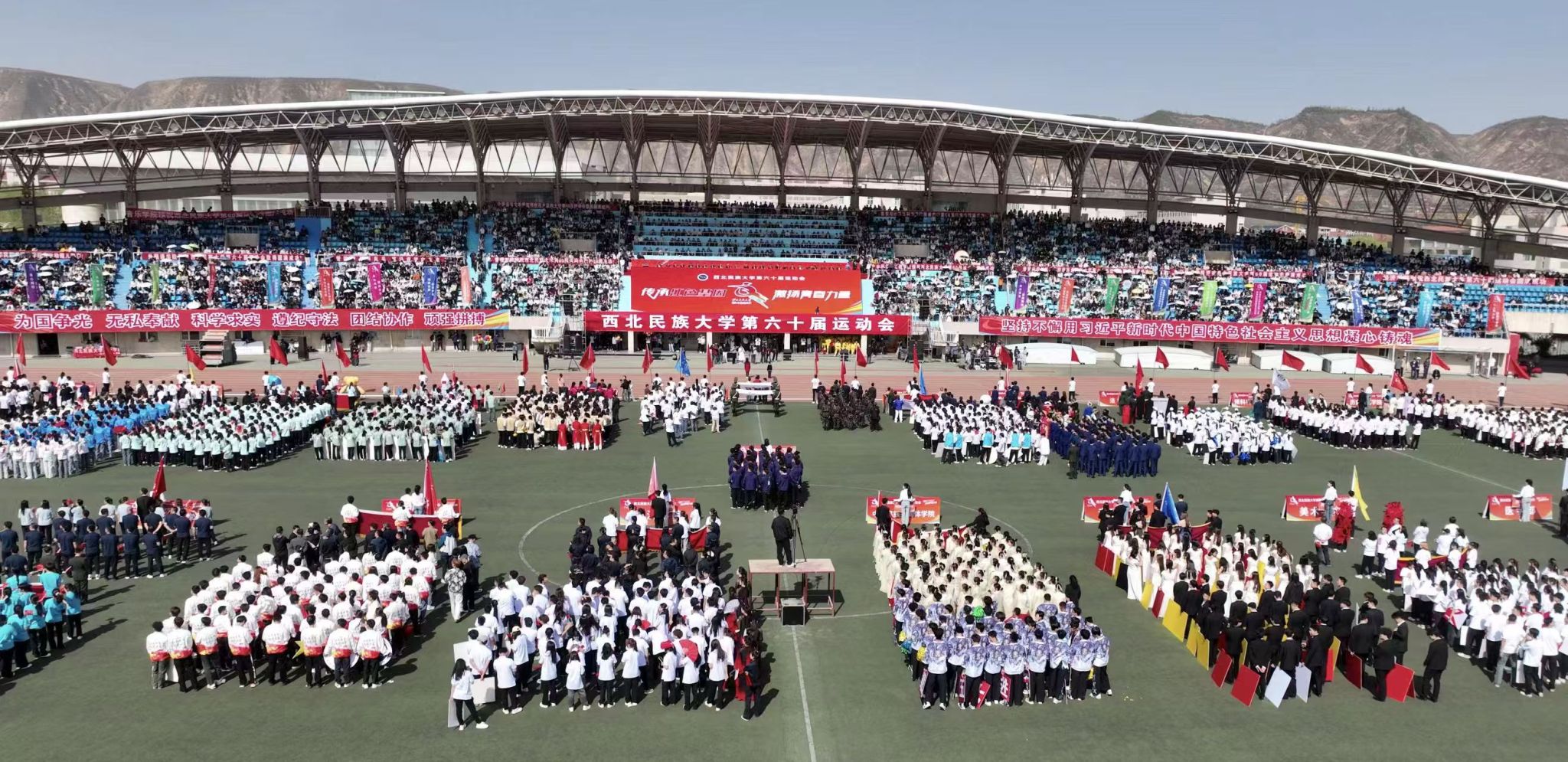 4月24日上午,西北民族大學第60屆運動會暨第三屆民族傳統體育運動會在榆中校區隆重開幕。校黨委副書記、校長王彥斌等校領導出席開幕式,部分退休校領導及50名校友代表應邀觀禮。黨委常委、副校長徐紹文主持開幕式,各學院、職能部門負責人與萬余名師生共同見證這一體育盛事。