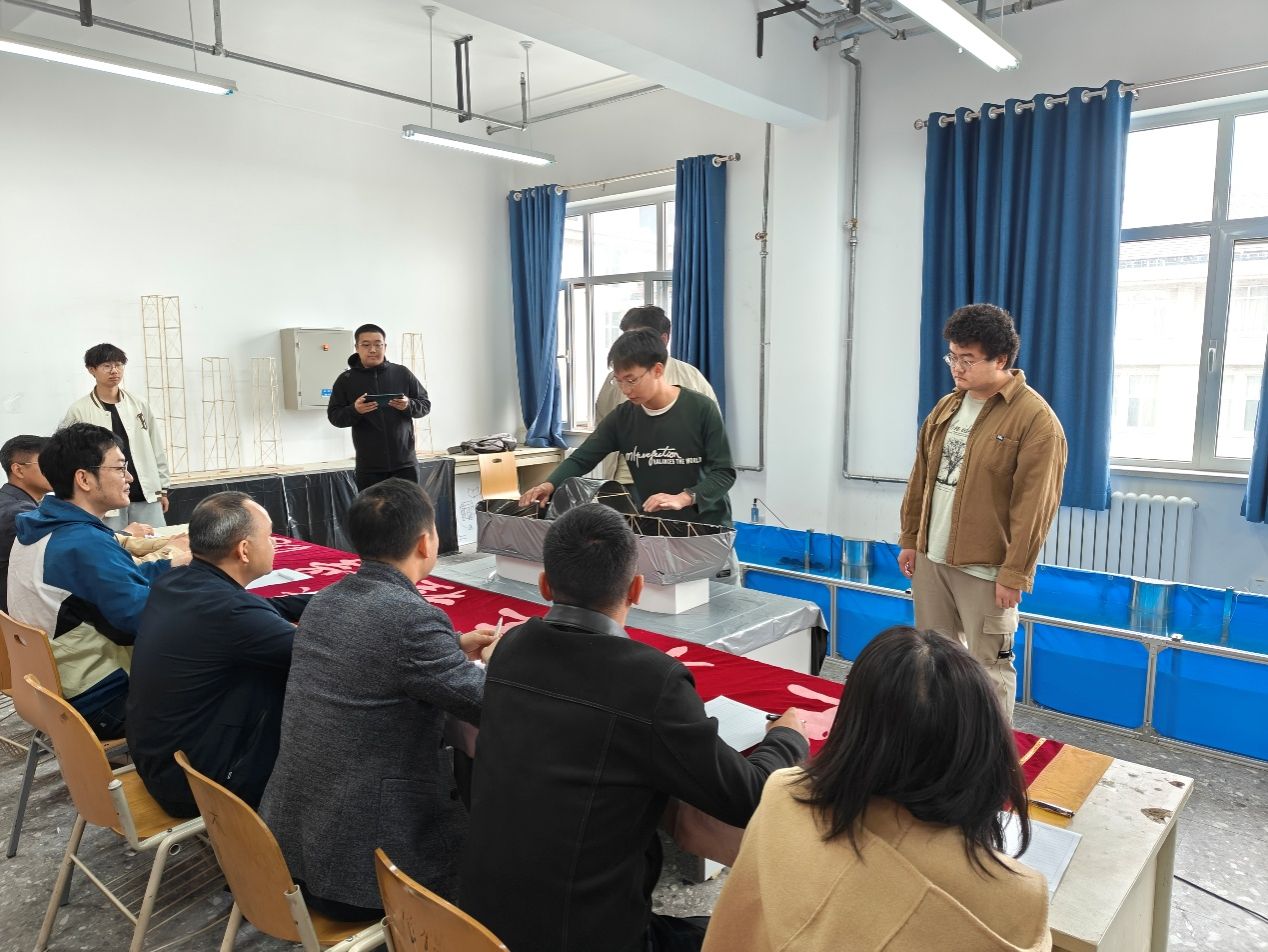 本次競賽吸引了來自不同專業參賽選手共110余名。比賽現場,各參賽隊伍依次展示自己的作品,并圍繞設計理念、力學原理、創新亮點等方面進行精彩的講解。參賽隊作品形態各異、構思巧妙,不僅體現了扎實的專業知識,更展現出對實際工程問題的深刻思考。在減輕結構重量的同時增強承重能力,實現了結構穩定性與美學價值的完美結合。在小組答辯結束后,評委們逐一點評,提出了專業建議,為參數選手們提供了寶貴的指導。競賽最終評選出一等獎2項,二等獎4項,三等獎6項。校賽獲獎隊伍將繼續參加培訓,為后期推選省賽隊伍做好充足的準備。