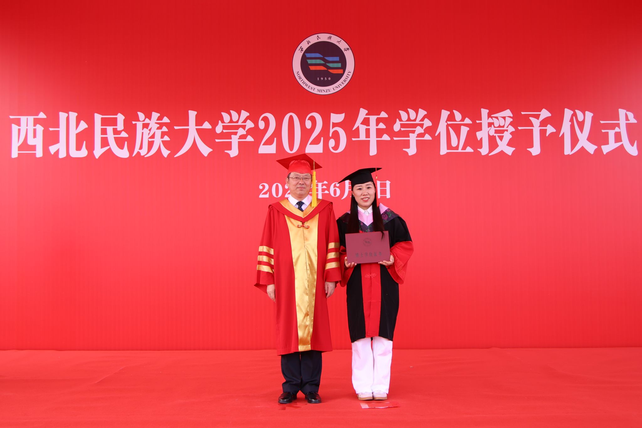 6月5日上午9時,西北民族大學2025年畢業(yè)典禮暨學位授予儀式在榆中校區(qū)民康體育場隆重舉行。在家校領導、各學位評定分委員會主席,各單位負責人、校友代表、教師代表、家長代表、班導師代表、在校生代表和2025屆在校畢業(yè)生齊聚會場,社會各界5萬余人云端觀禮。黨委常委、副校長徐紹文主持儀式。
