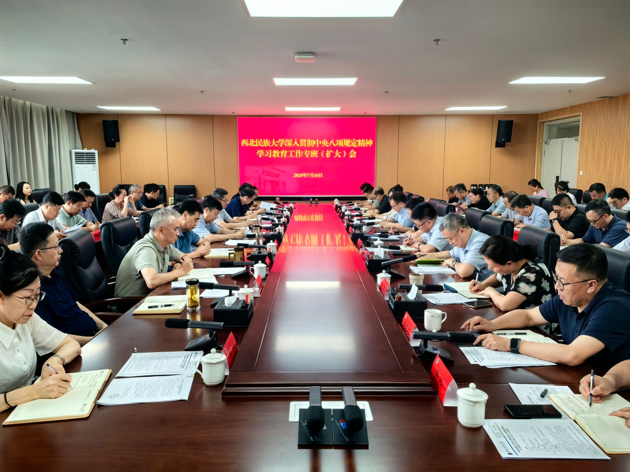7月16日,學校召開深入貫徹中央八項規定精神學習教育工作專班(擴大)會。黨委書記張俊豪出席會議并講話,黨委副書記、校長王彥斌,黨委其他班子成員、學習教育工作專班成員、各二級單位黨組織書記參加會議。會議由黨委常委、副校長徐紹文主持。