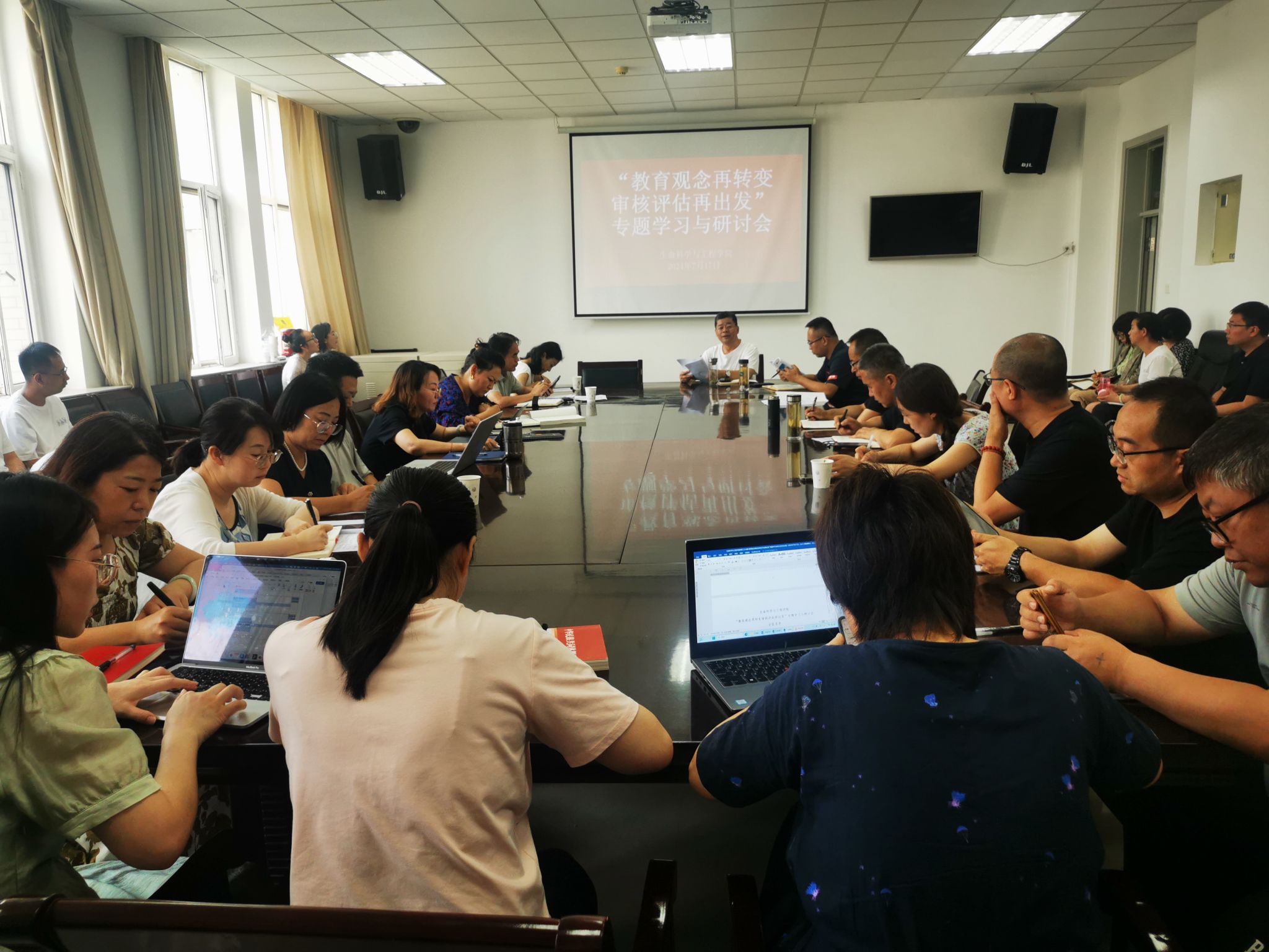 2024年7月17日上午10:30,生命科學與工程學院在榆中校區336會議室召開“教育觀念再轉變 審核評估再出發”專題學習與研討會。會議由學院黨委副書記、院長臧榮鑫主持,學院班子成員、全體教職工90余人參加會議。