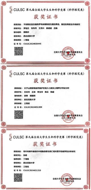 近日,由全國大學(xué)生生命科學(xué)競賽委員會(huì)主辦、甘肅省大學(xué)生生命科學(xué)競賽組織委員會(huì)組織實(shí)施、甘肅農(nóng)業(yè)大學(xué)承辦的第九屆全國大學(xué)生生命科學(xué)競賽暨第五屆甘肅省大學(xué)生生命科學(xué)競賽創(chuàng)新創(chuàng)業(yè)類、科學(xué)探究類決賽中,西北民族大學(xué)生命科學(xué)與工程學(xué)院參賽隊(duì)伍在副院長郭鵬輝教授帶領(lǐng)下,經(jīng)過激烈角逐,共有8支隊(duì)伍入圍決賽,獲省賽一等獎(jiǎng)3項(xiàng),二等獎(jiǎng)4項(xiàng),三等獎(jiǎng)1項(xiàng)。