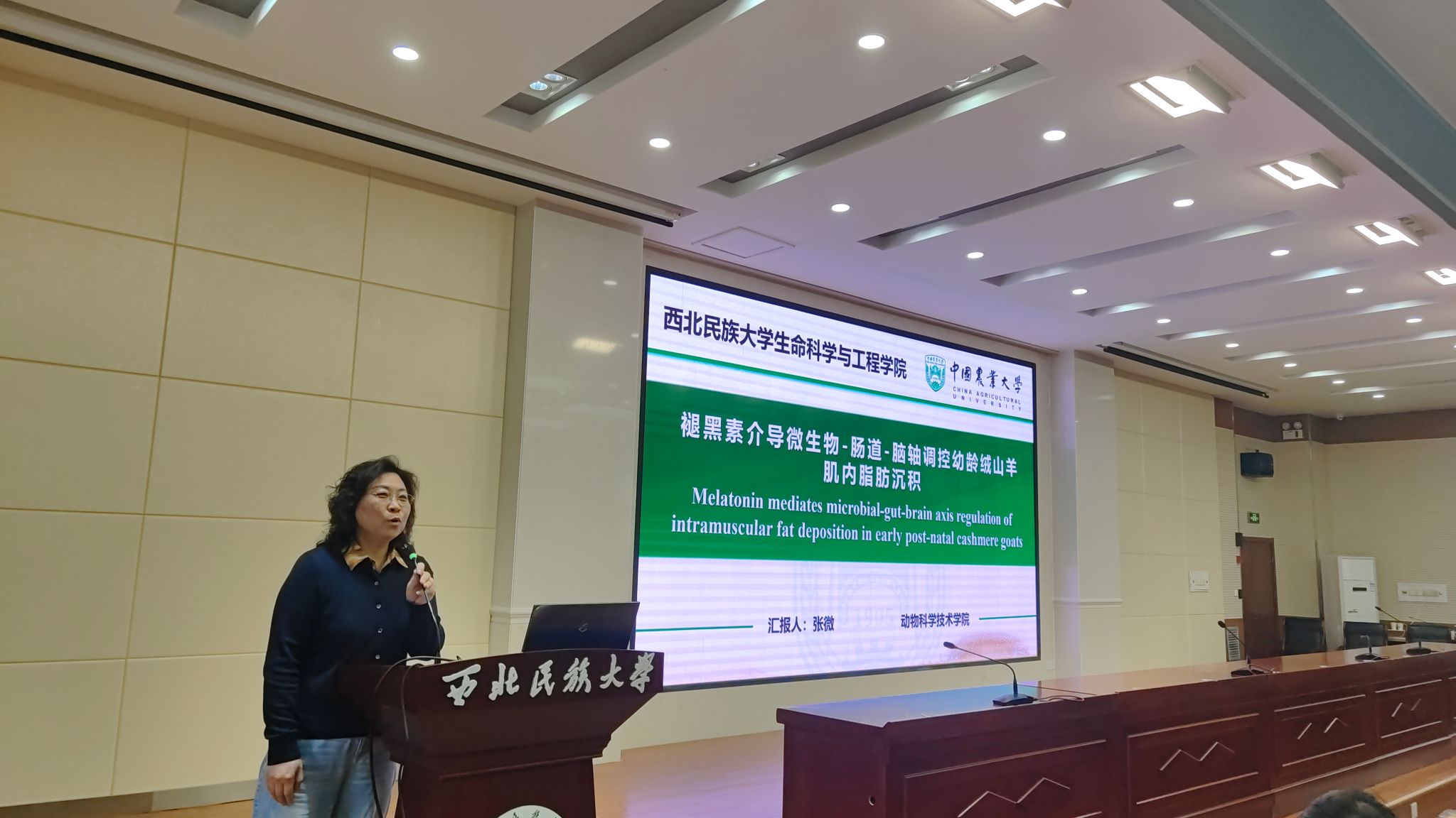 學術報告會上,河北農業大學張英杰教授、中國農業科學院蘭州畜牧與獸藥研究所張繼瑜研究員、中國農業大學張微教授分別作了題為“動物分子營養研究”、“獸藥創新與食品安全”和“褪黑素介導微生物-腸道-腦軸調控幼齡絨山羊肌內脂肪沉積”的精彩報告。專家們開闊的學術視野、豐碩的科研成果、高屋建瓴的學術思想,為學院師生帶來前沿的學術動態和深刻的思想啟迪,為以后的科學研究提供良好的思路和方法。