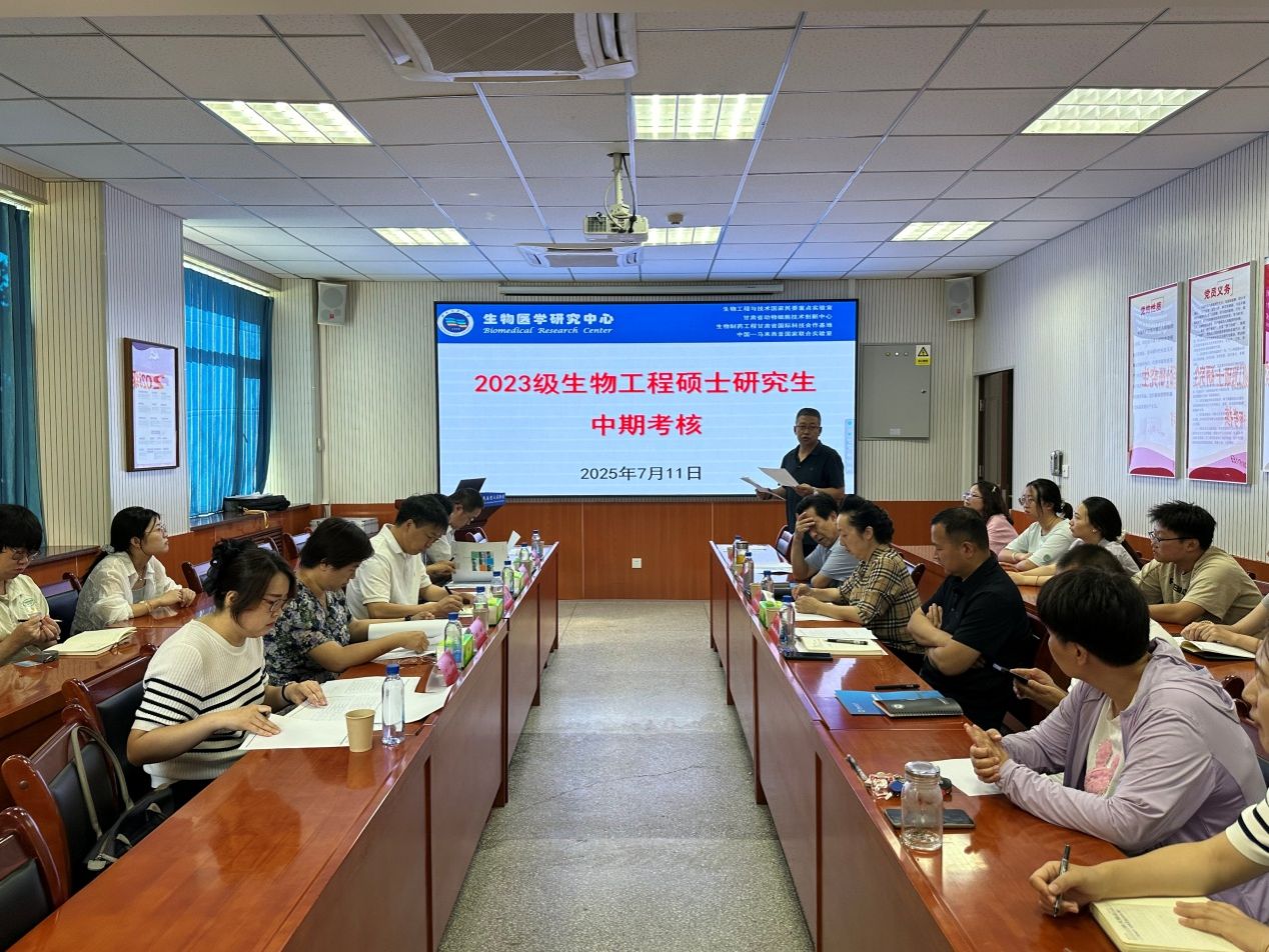 2025年7月11日,生物醫學研究中心邀請了中國農業科學院蘭州獸醫研究所劉光亮研究員、甘肅農業大學食品科學與工程學院李永才教授、蘭州大學生命科學學院程博教授、甘肅農業大學生命科學技術學院張全偉教授、蘭州理工大學生命科學與工程學院王芳副教授組成專家組,對2023級生物工程學術型碩士研究生進行了中期考核。