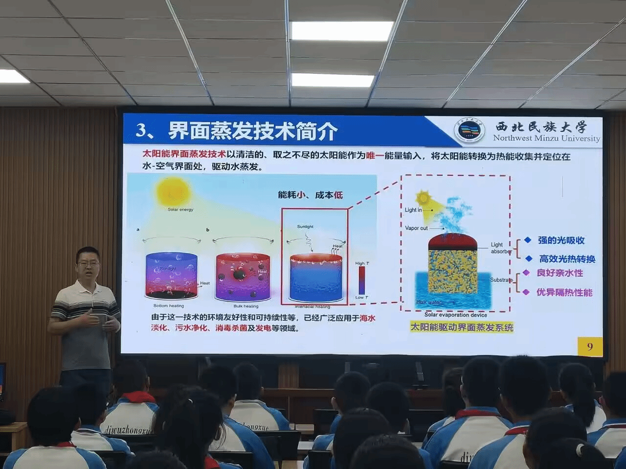 7月16日,西北民族大學“石榴籽”科普下鄉助力鄉村振興實踐團赴臨夏市進行2024年暑期“三下鄉”社會實踐活動。在臨夏市第五中學團隊開展了全國“大思政課”實踐教學基地服務站、全國科普教育基地服務站授牌儀式。儀式結束后,實踐團老師及學生結合團隊專業優勢,為學生們開展了“向海洋要淡水——太陽能驅動界面蒸發技術”的科普知識宣講。在宣講過程中,同學們踴躍提問并參與討論,對宣講內容展現出極大的興趣,使大家學到了更多科學知識、開拓了眼界。