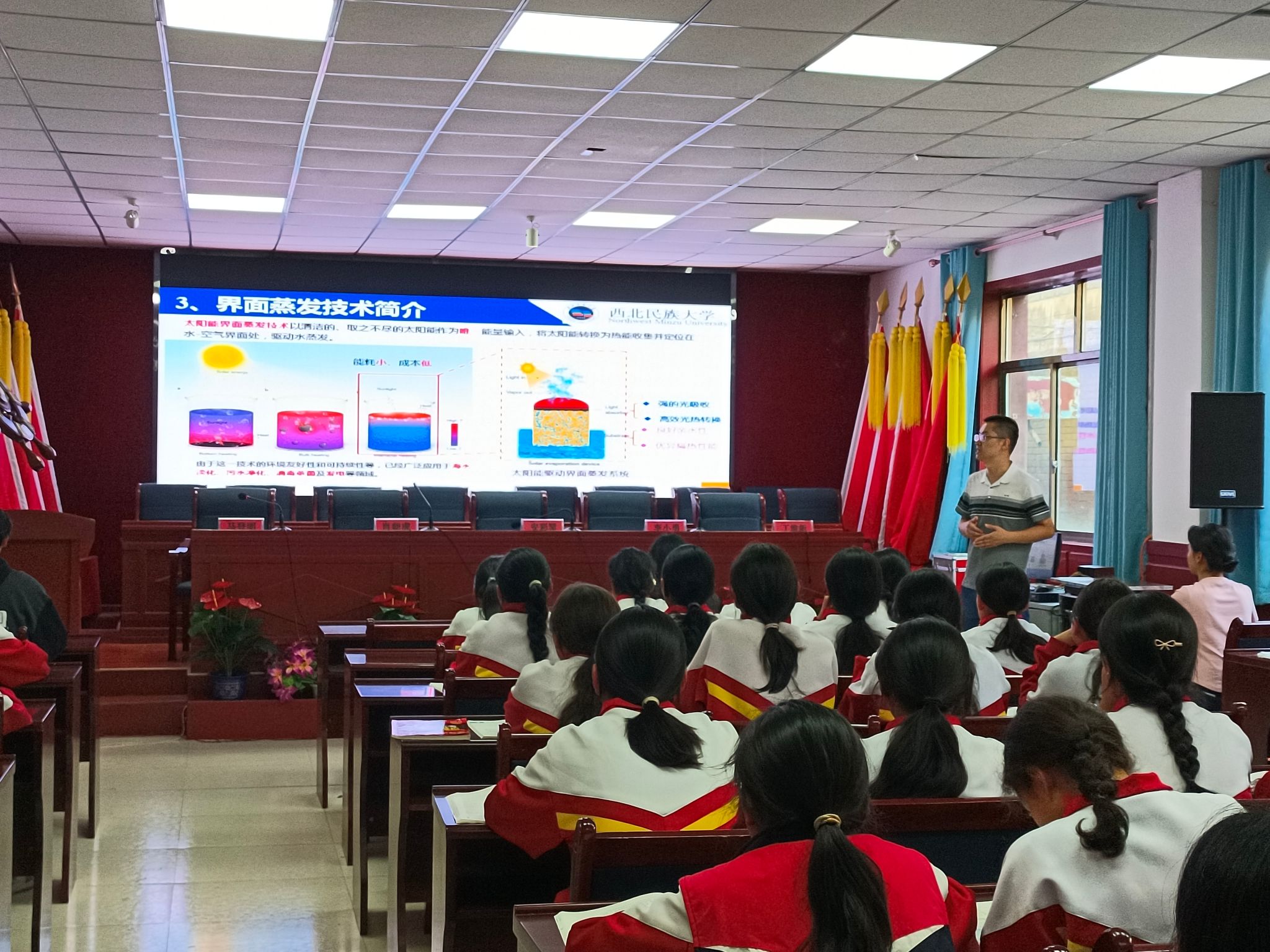 授牌儀式后,肖朝虎老師和盧小雨同學作了題為《向海洋要淡水》和《探索太陽能的奧秘》的科普“三下鄉”教育講座,受到學生的熱烈歡迎和一致好評。