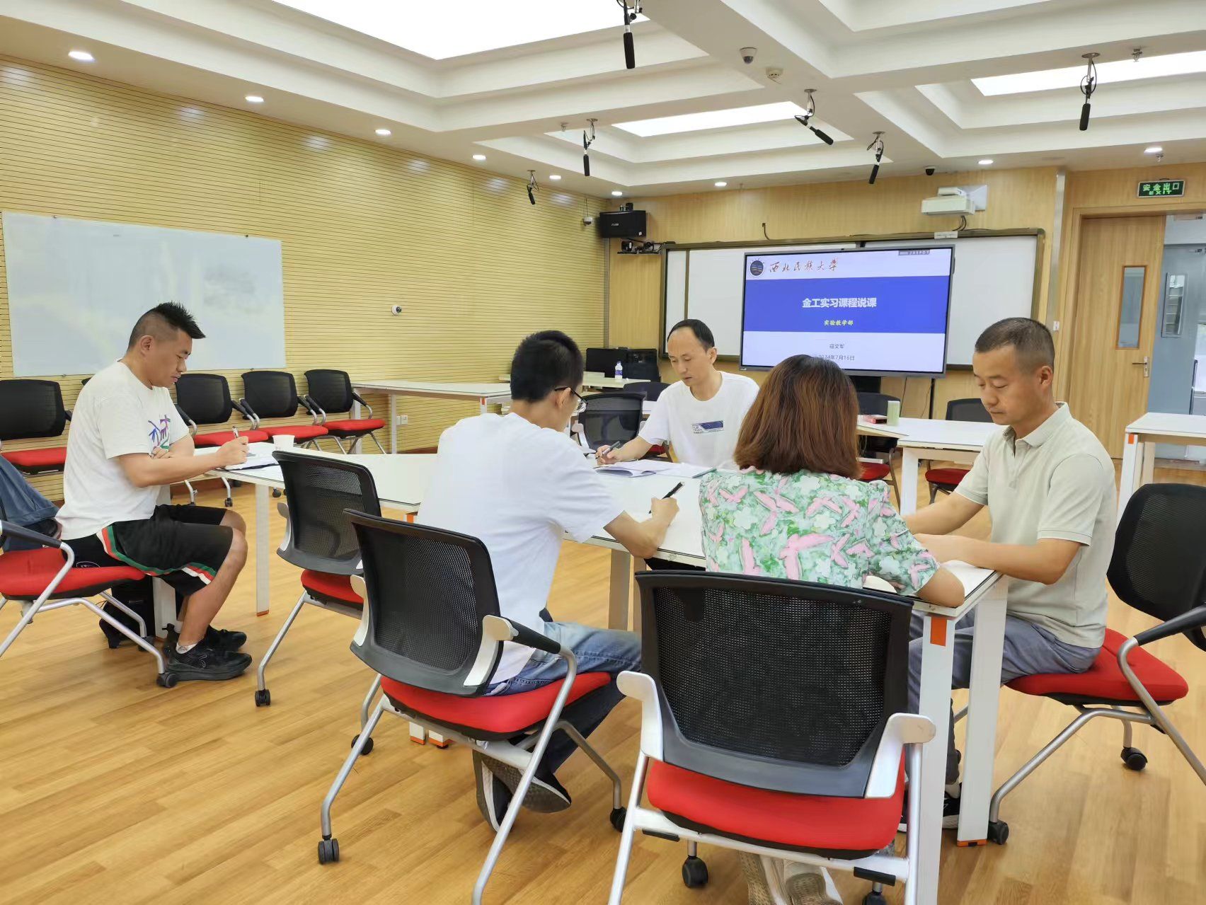 7月18日,實驗教學部工程訓練中心在西北新村校區文津樓101教室組織教師開展說課、講課、聽評課和集體磨課教研活動,活動由實驗教學部副主任寇亮同志主持,工程訓練中心四位教師參加了此次活動。