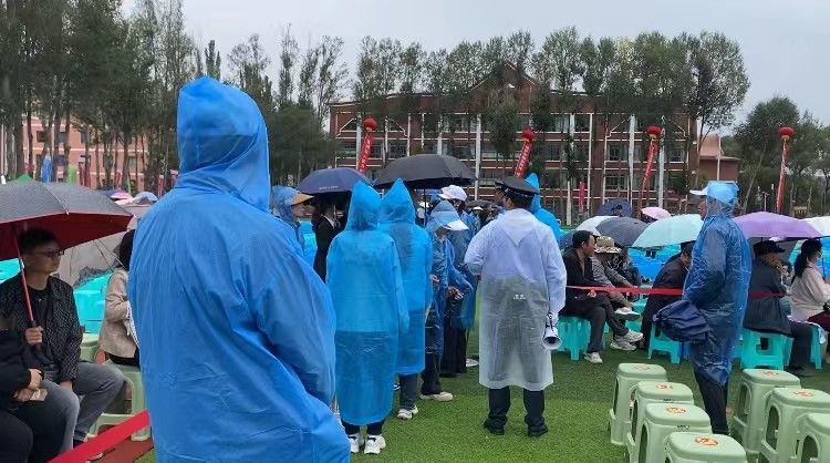當(dāng)天下午,一場(chǎng)不期而至的大雨傾盆而下,為這場(chǎng)慶典增添了幾分挑戰(zhàn)與考驗(yàn)。然而,在這風(fēng)雨交加的時(shí)刻,土木青年志愿者們卻如同堅(jiān)韌的松柏,毅然堅(jiān)守在各自的崗位上,用實(shí)際行動(dòng)詮釋了“風(fēng)雨無阻、勇往直前”的志愿者精神,隨著嘉賓與觀眾的陸續(xù)到來,志愿者們迅速轉(zhuǎn)變?yōu)橹刃蚓S護(hù)的“守護(hù)者”。他們分布在會(huì)場(chǎng)的各個(gè)入口和關(guān)鍵區(qū)域,耐心引導(dǎo)人流,確保入場(chǎng)秩序井然。面對(duì)突發(fā)情況,他們反應(yīng)迅速,有效處理,為慶典的順利進(jìn)行提供了堅(jiān)實(shí)的保障。