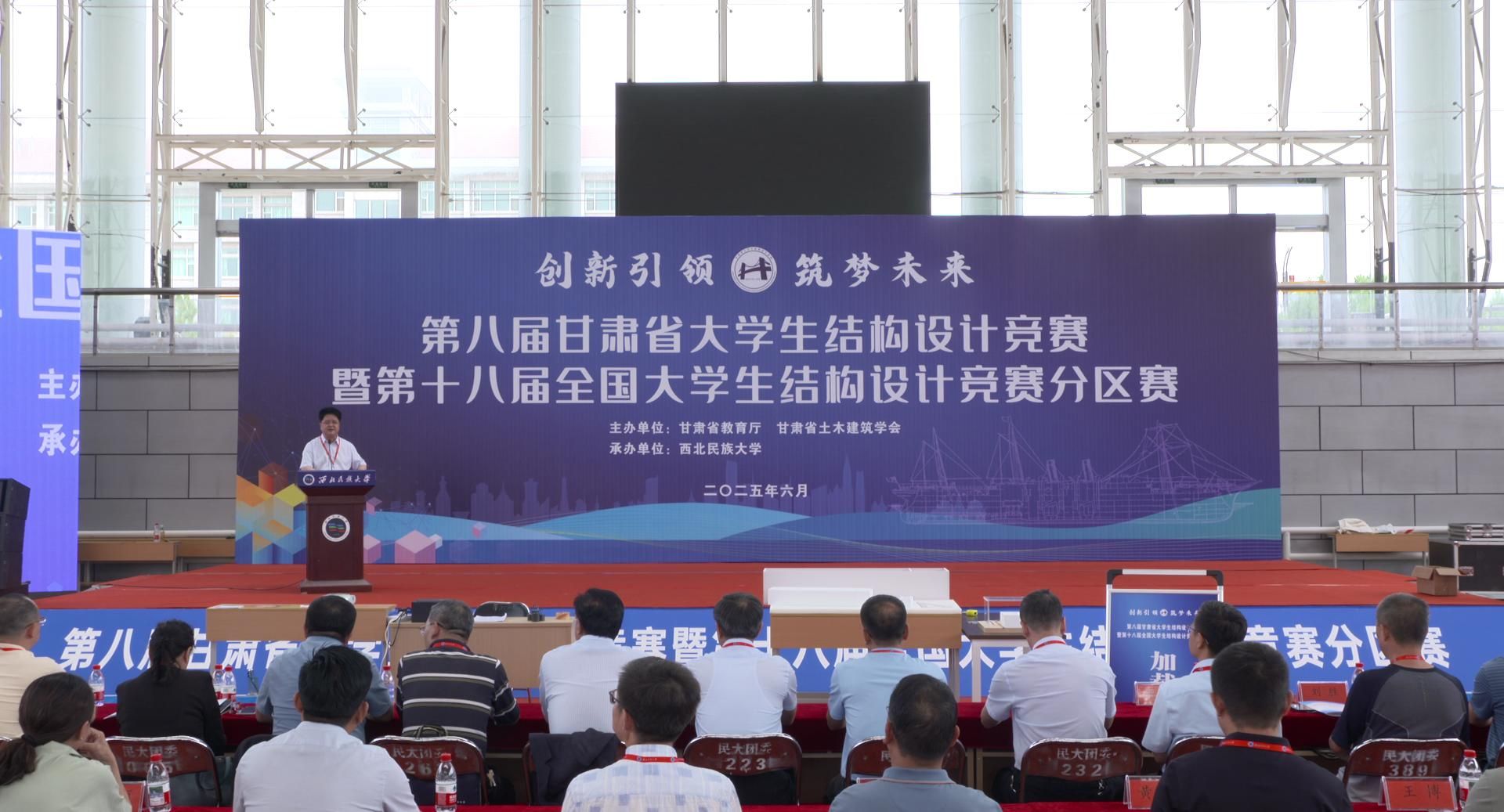 2025年6月6日下午4時,由甘肅省教育廳、甘肅省土木建筑學會主辦,西北民族大學承辦的第八屆甘肅省大學生結構設計競賽暨第十八屆全國大學生結構設計競賽分區賽在西北民族大學榆中校區籃排館隆重開幕。本屆賽事吸引了來自蘭州大學、蘭州交通大學、蘭州理工大學、甘肅農業大學等省內20所高校的56支參賽隊伍齊聚一堂。西北民族大學黨委常委、副校長王建華,甘肅省土木建筑學會副理事長姜浩,甘肅省大學生結構設計競賽委員會秘書長、蘭州交通大學土木工程學院院長藺鵬臻,西北民族大學教務處副處長林強,以及各參賽高校學院領導、指導老師出席開幕式。大賽組委會成員、評委專家及全體參賽師生共同參與。開幕式由西北民族大學土木工程學院院長曹萬智主持。