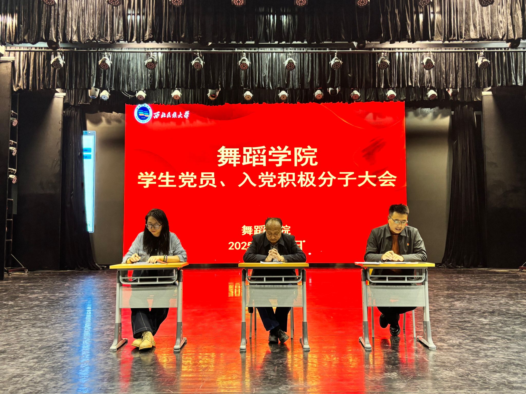 2025年3月4日上午,舞蹈學(xué)院在舞蹈樓小劇場組織召開學(xué)生黨員、入黨積極分子大會(huì)。學(xué)院黨委副書記、副院長魏俊閃,組織員馬雪峰、團(tuán)委書記刁彥及全體學(xué)生黨員、入黨積極分子共100余人參加會(huì)議。會(huì)議由學(xué)院團(tuán)委書記刁彥主持。