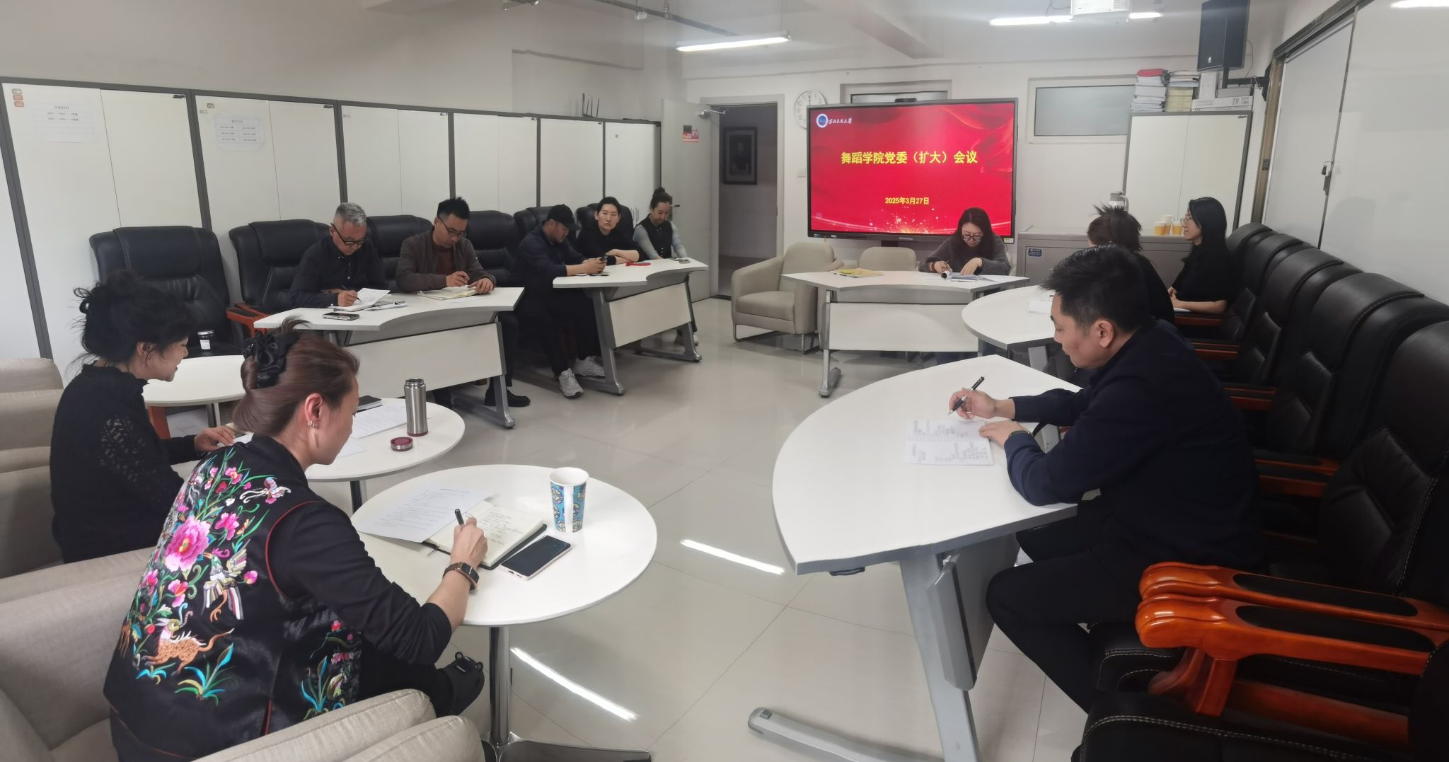 3月27日下午,舞蹈學院召開黨委會(擴大)會議,部署開展深入貫徹中央八項規定精神學習教育工作。學院黨委書記牛麗娟主持會議,黨委委員、各黨支部書記參加會議。