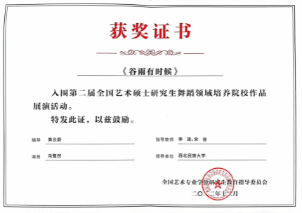 全國藝術專業學位研究生教育指導委員會發布了《關于舉辦“第二屆全國藝術碩士研究生舞蹈領域培養院校作品展演活動”及報送參演作品的通知》(藝教指委[2022]12號),該活動由全國藝術專業學位研究生教育指導委員會主辦,東北師范大學承辦。舞蹈學院副教授巴特爾創作并擔任指導教師的舞蹈作品《傳承》和學院碩士研究生黃云蔚、馮驁然創作表演、學院李琦教授與宋佳副教授擔任指導教師的作品《谷雨有時候》兩部作品入圍本次展演活動。