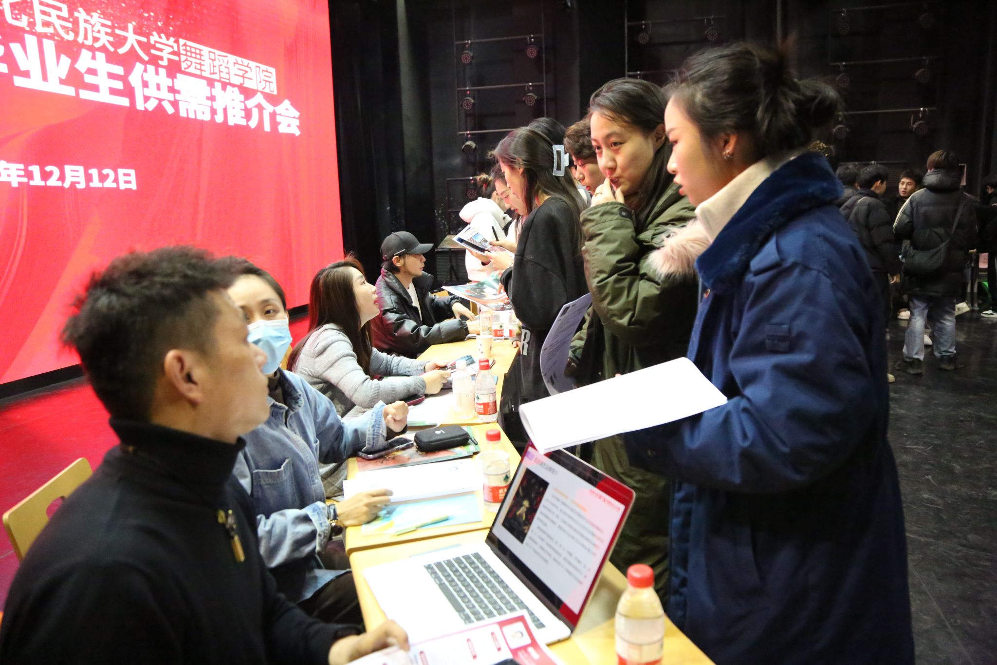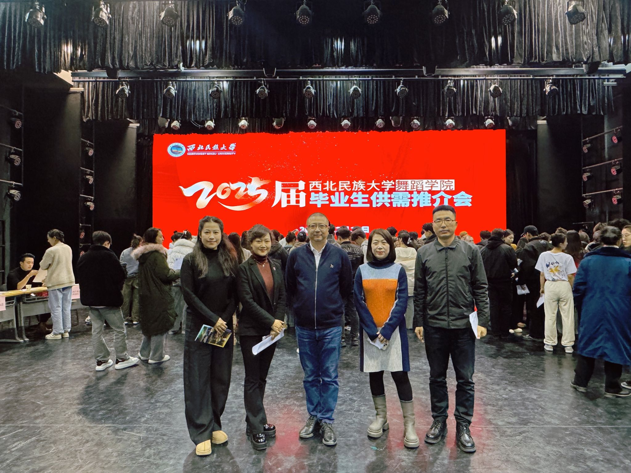 為全力做好畢業(yè)生就業(yè)工作,12月12日上午,舞蹈學(xué)院在舞蹈樓小劇場舉辦了2025屆畢業(yè)生供需推介會。深圳錦繡中華發(fā)展有限公司、宋城演藝發(fā)展股份有限公司、陜西文化產(chǎn)業(yè)投資控股集團(tuán)、寧夏演藝集團(tuán)歌舞劇院有限公司、眉山市歌舞劇院有限責(zé)任公司、甘肅省民族歌舞團(tuán)、甘肅演藝集團(tuán)歌舞劇院、甘肅演藝集團(tuán)文旅產(chǎn)業(yè)發(fā)展有限公司等19家用人單位參會并進(jìn)行招聘宣講。學(xué)校學(xué)生工作處就業(yè)指導(dǎo)中心主任馬莉、學(xué)院領(lǐng)導(dǎo)班子成員、輔導(dǎo)員、班導(dǎo)師及2025屆全體畢業(yè)生參加了此次推介會。推介會由學(xué)院黨委書記牛麗娟主持。
