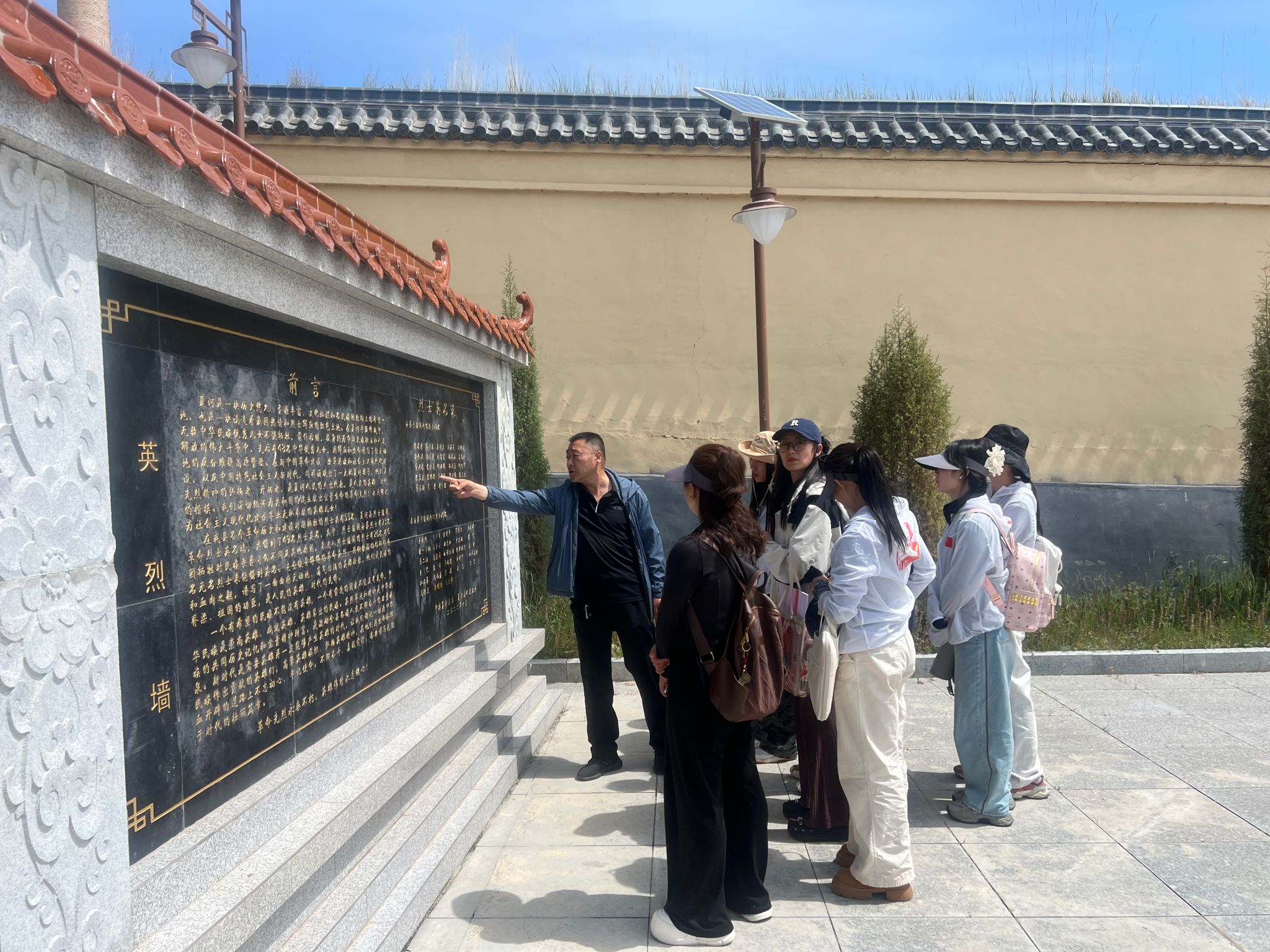 7月18日,實踐團在夏河縣烈士陵園舉行了“緬懷革命先烈,傳承革命精神”主題紀念活動。工作人員詳細講解了英烈墻內容,并帶領大家瞻仰烈士紀念碑,追憶革命歷史,深刻感受先烈們為革命事業不惜拋頭顱、灑熱血的英雄氣概和奉獻精神。在縣退役軍人事務局工作人員的引導下,實踐團成員在烈士紀念碑前緬懷為革命事業英勇獻身的先烈們,全體人員整齊列隊,神情肅穆,向烈士紀念碑深深鞠躬,表達對烈士們的崇高敬意和無限哀思。