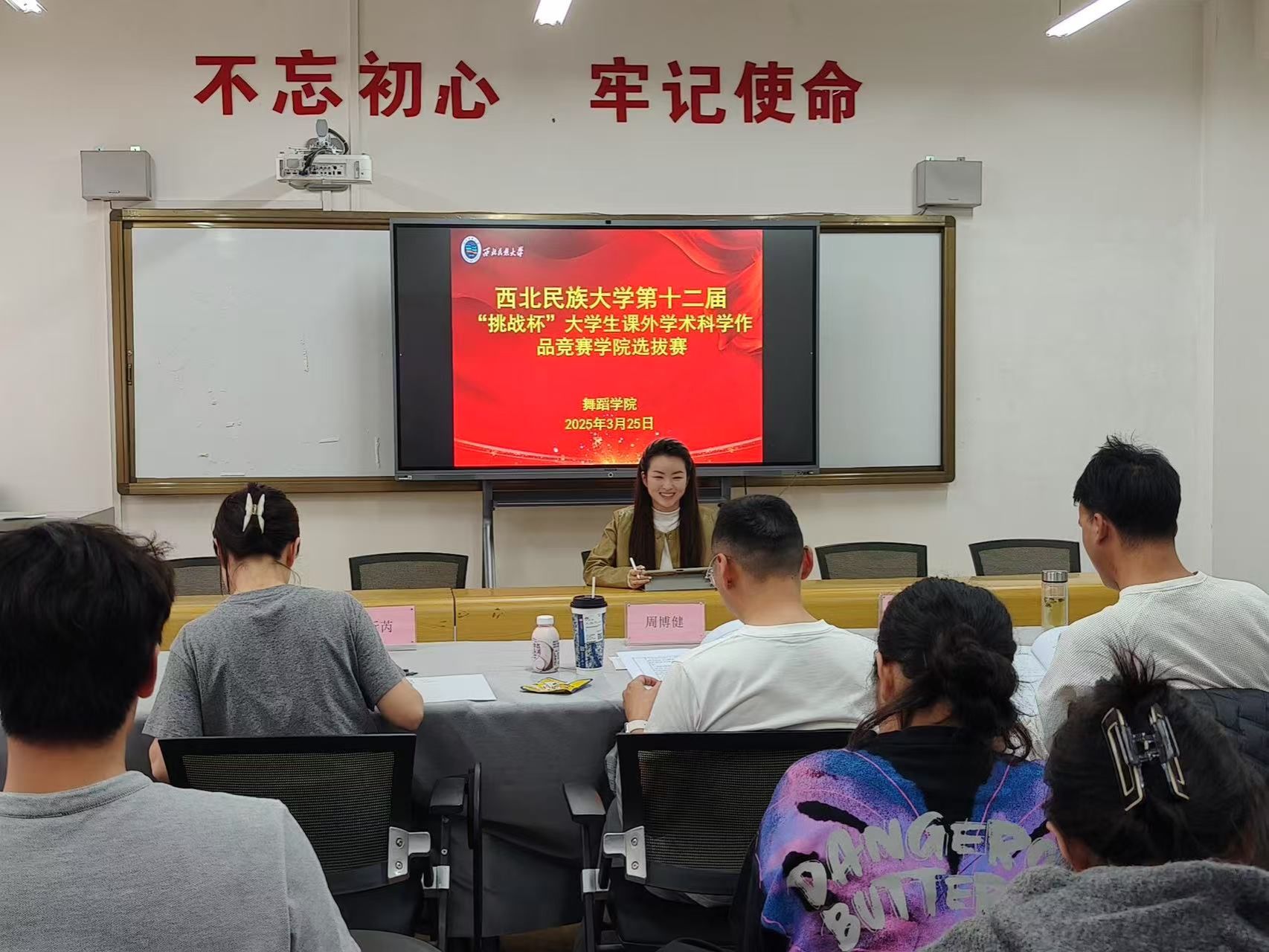 為貫徹落實(shí)習(xí)近平總書記給中國國際大學(xué)生創(chuàng)新大賽參賽學(xué)生代表回信精神,促進(jìn)青年創(chuàng)新人才成長,深化學(xué)生綜合素質(zhì)教育,3月25日,舞蹈學(xué)院組織舉辦了西北民族大學(xué)第十二屆“挑戰(zhàn)杯”大學(xué)生課外學(xué)術(shù)科技作品競賽學(xué)院選拔賽。
