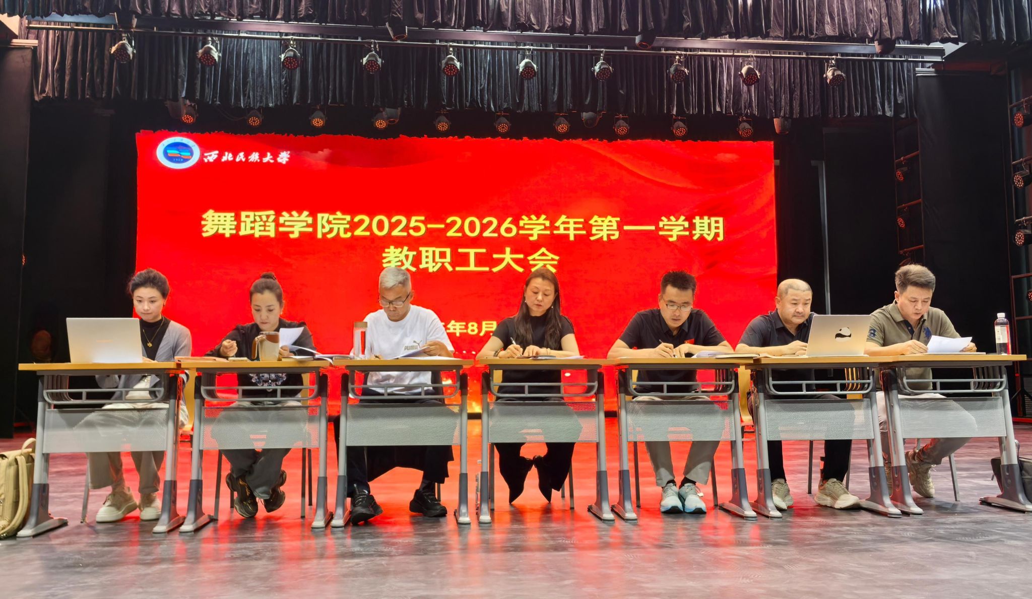 學院黨委副書記、院長李琦全面總結了學院暑期工作成果,充分肯定了全體教職工的辛勤付出和取得的優異成績,并對本學期的重點工作進行了安排和強調。李琦強調,本學期是“十四五”規劃收官和“十五五”規劃謀篇布局的關鍵時期,全體教職工要以鑄牢中華民族共同體意識為主線,落實立德樹人根本任務,聚焦教學質量核心,緊跟數字時代步伐,與時俱進,深化教育教學創新,積極參與學科建設、課程改革與藝術實踐,不斷提高自身教育教學水平,要求全體教職工不斷凝聚共識、形成合力,以飽滿的熱情投入新學期工作,以更好的面貌迎接學校第七次黨代會和西北民族大學建校75周年。