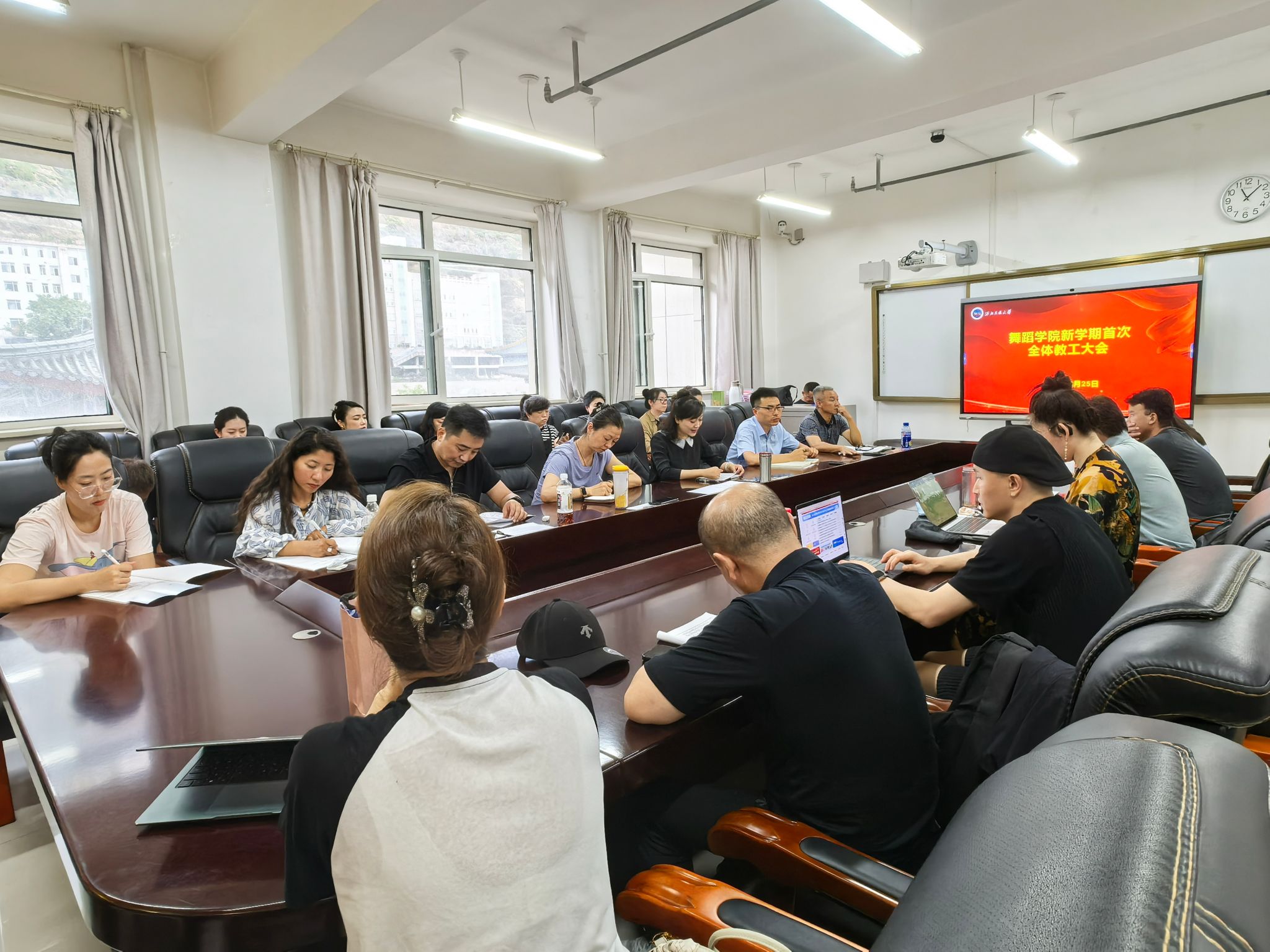 2024年8月25日,舞蹈學院組織召開了新學期第一次教職工大會。學院領導班子成員、全體教職工及外聘教師50余人參加大會。會議由學院黨委副書記、副院長魏俊閃主持。