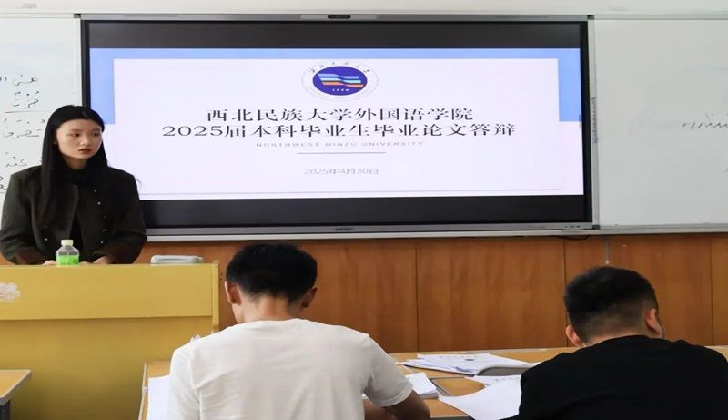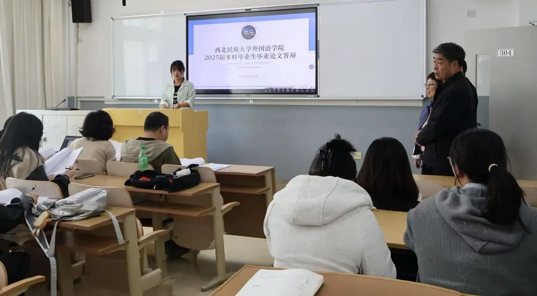 2025年4月30日,外國語學院在致美樓各教室開展2025屆本科生學業論文畢業答辯工作。答辯期間學院領導班子走訪各答辯教室,密切關注答辯情況。