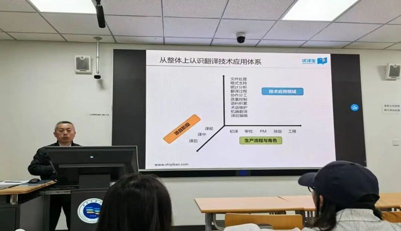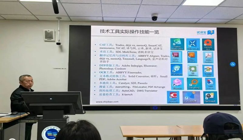 講座中,師老師還展示了多種翻譯技術工具的分類及其實際應用,包括輔助翻譯、機器翻譯、本地化技術、QA工具、翻譯排版和本地化測試等。通過實際操作技能的展示,學生們對CAT工具、術語工具、翻譯記憶庫與語料庫工具等有了更深入的理解。
