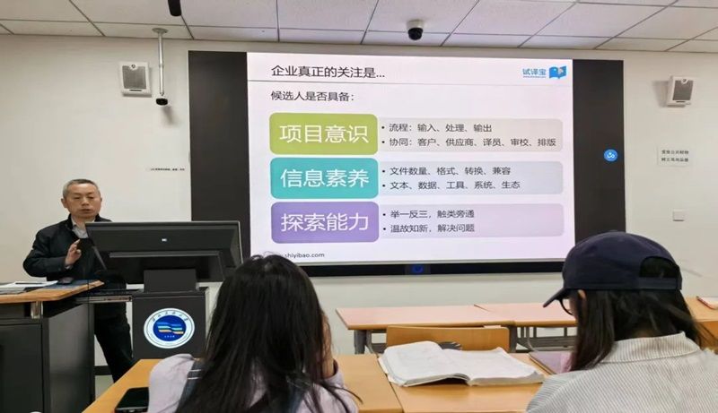 師老師在講座中詳細介紹了翻譯技術的基本概念、發展趨勢及其在翻譯項目流程中的應用。他強調了高校在翻譯人才培養過程中,既要堅持語言學習和翻譯教育的基本規律,又要面向行業實踐與社會現實需求,培養懂語言、懂管理、懂技術的高層次應用型翻譯人才。