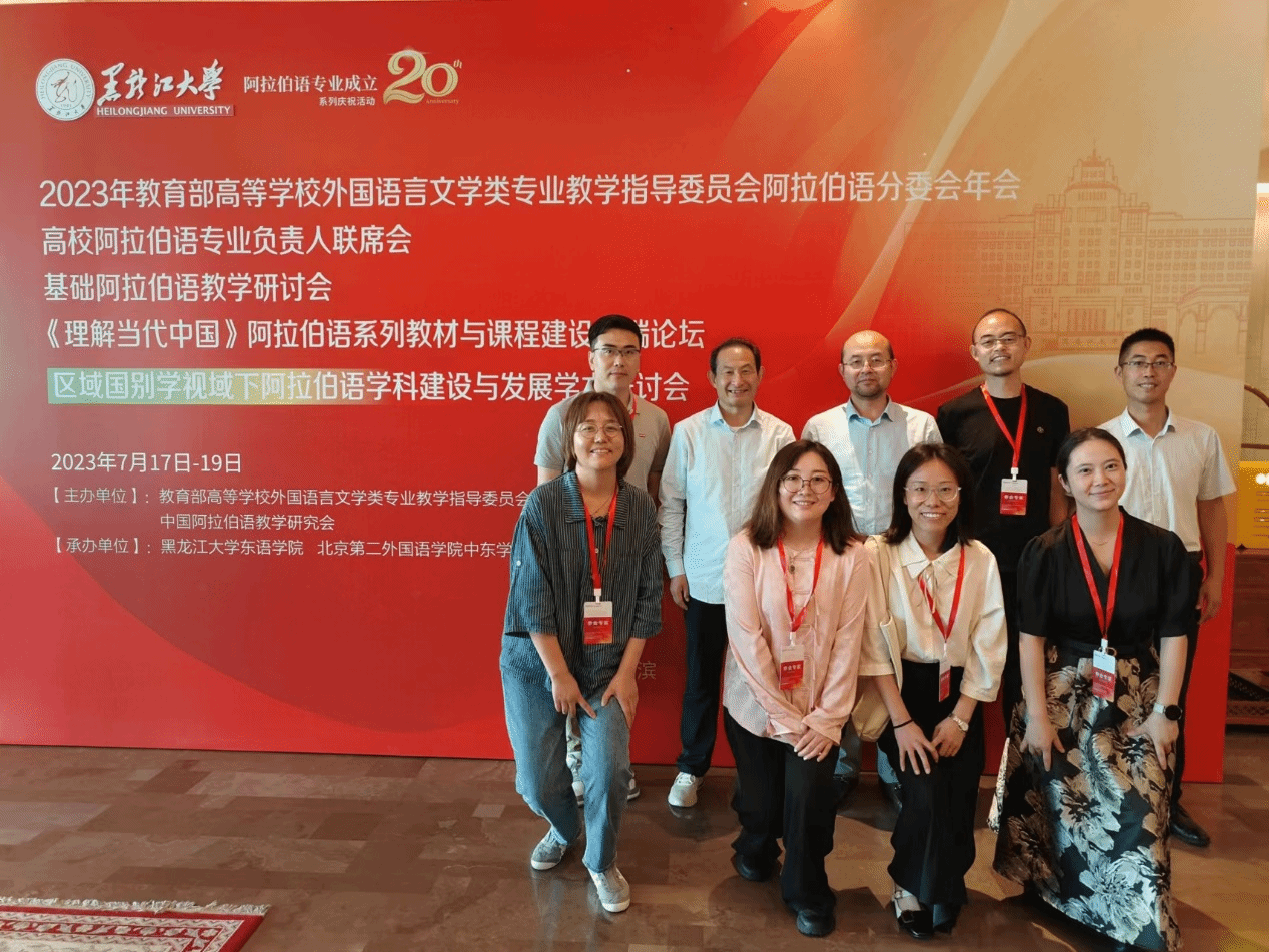 今年7月17日-19日,黑龍江哈爾濱市黑龍江大學承辦了“教育部高等學校外國語言文學類專業教學指導委員會阿拉伯語專業教學指導分委員會2023年年會暨阿拉伯語專業負責人聯席會議”,我院馬和斌教授帶隊參會。與會期間,與會人員參與了考試大綱的制定工作,并就阿拉伯語一流專業建設事宜與黑龍江大學東語學院負責人進行了深度交流。同時與參會的優秀校友進行了廣泛交流。