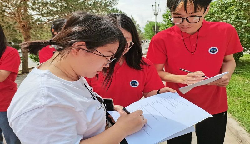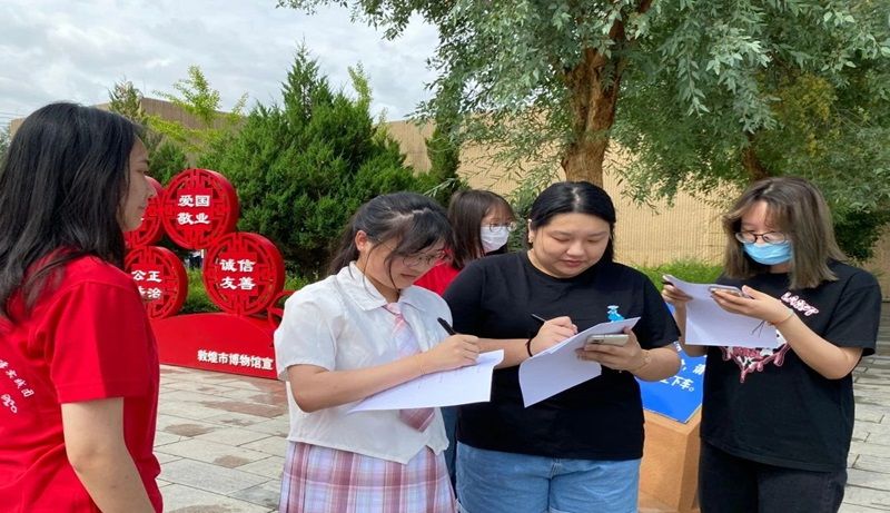 在問卷調查過程中,文旅翻譯實踐團成員們不懼烈日,在完成既定的翻譯實踐調研任務后,實踐團成員們在實踐點附近向當地居民、觀光游客分發調查問卷,并進行深入的訪談交流。更深入地了解以敦煌文化為代表的中華優秀傳統文化的翻譯現狀和傳播狀況以及紅色故事在敦煌當地的傳播情況,為調研數據的收集以及后期調研報告的撰寫奠定了堅實的基礎。