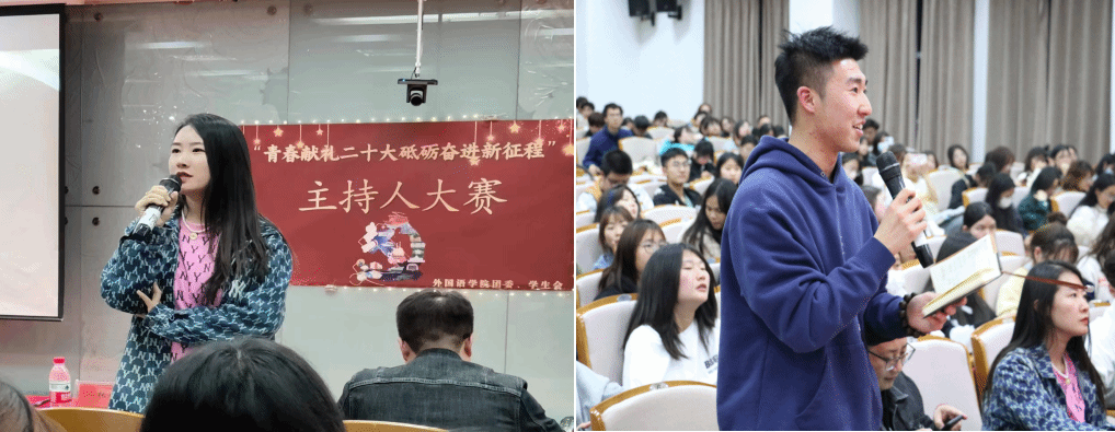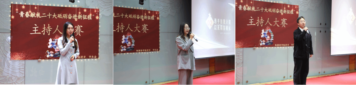 為聚青春力量、展青春風(fēng)采,弘揚積極向上的校園文化,外國語學(xué)院于2023年4月12日晚七點半在致真樓101教室舉辦“青春獻(xiàn)禮二十大,砥礪奮進(jìn)新征程”主持人大賽決賽。外國語學(xué)院副院長張榮、團(tuán)委副書記袁嘉、輔導(dǎo)員薛斌斌、學(xué)校主持人社團(tuán)單嘉良、張培耕、李萃偉擔(dān)任評委。