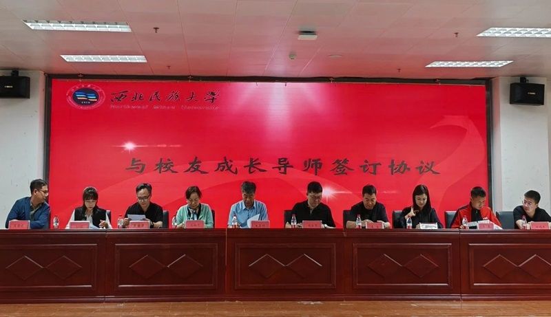 活動第一階段,四位校友成長導師和外國語學院黨委書記豆存祥、院長馬納琴簽訂了聘用協議,為同學們未來成長成才和職業發展提供幫助和指導。江蘇本源商業管理有限公司董事長成永堅與外國語學院簽訂實習基地合作協議,助力同學們未來求職和就業。深圳艾派物流有限公司總經理邱曉東與外國語學院簽訂了捐贈協議,為學院未來發展提供大力支持。對外聯絡辦公室主任薛國梁代表學校為邱曉東頒發捐贈證書和紀念章。