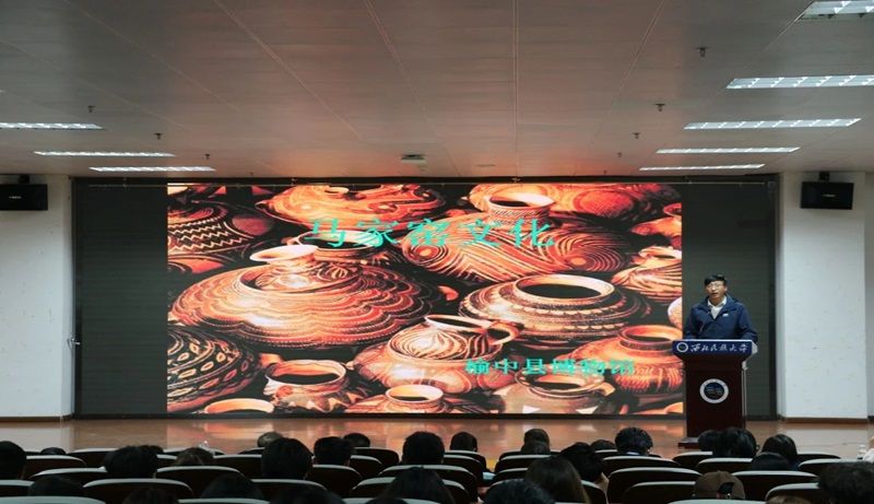 隨后,興隆山生態旅游中心和榆中縣博物館的工作人員分別上臺,為師生們帶來了關于興隆山自然風光和馬家窯彩陶文化的精彩分享。通過精美的圖片和生動的視頻資料,師生們仿佛置身于興隆山的壯美景色之中,領略到了大自然的神奇魅力和保護生態環境的重要性。同時,工作人員們還詳細介紹了馬家窯彩陶的歷史背景及其對中國彩陶文化的深遠影響,使同學們深刻感受到了馬家窯文化的獨特魅力。