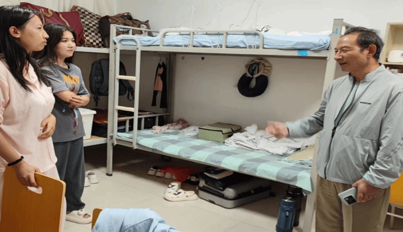 在走訪學生宿舍的過程中,學院領導與老師首先對2024級新生的到來表達了熱烈的歡迎和問候。通過交流,老師們了解了新生對大學的初印象,以及是否適應大學校園環境、目前學習生活中是否存在問題和困難等,學院可以為大家提供力所能及的幫助。此外,老師們勉勵新生要珍惜大學時光,做好學業和人生規劃,加強體育鍛煉,注重勞逸結合,養成良好的生活習慣,打造干凈整潔的宿舍環境,營造良好的學習生活氛圍,同時提醒大家注意公寓安全用電和防范電信網絡詐騙。