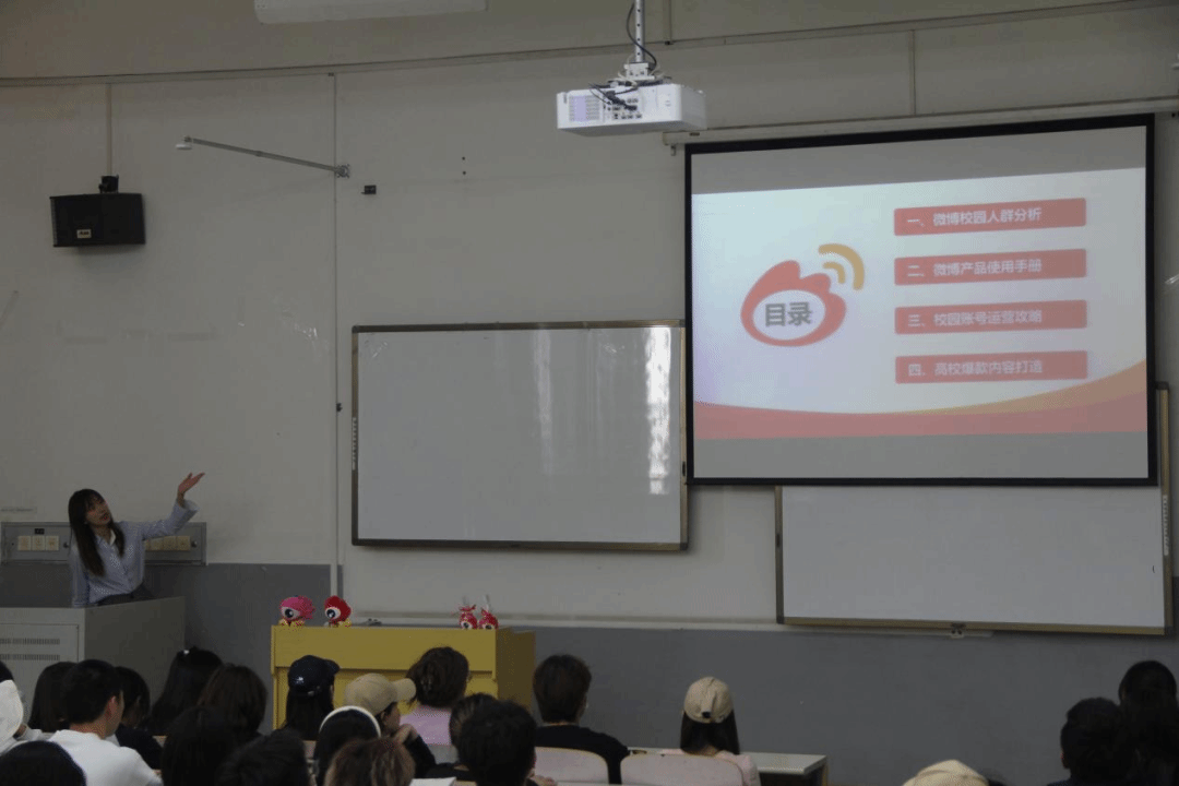 趙崢主要圍繞微博校園人群分析、校園賬號運營攻略和高校爆款內容打造,以及微博產品使用手冊四個部分對微博的運營模式作了分析,并詳細講解如何運用微博這個平臺放大宣傳好校園故事。圍繞校園生活,聚焦支持校團委賬號運營、對接學生團隊工作和公司內部工作策劃,強調微博平臺對大學生群體的關注。立足官方公開數據,結合年輕群體為主的背景,通過分析大學生的主要心理和大學的固定時間結點,再現微博校園打造多元校園話題的過程,讓同學們從不同角度認識到微博平臺。
