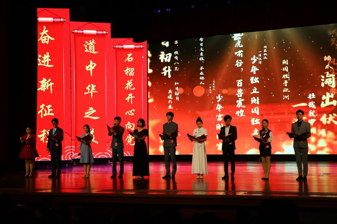 比賽在集體朗誦《少年中國說》中拉開序幕,10名大學生選手豪情滿懷、慷慨激昂,用真誠的語調、昂揚的激情、溫婉的情愫謳歌了黨的豐功偉績,表達了當代青年學生愛黨愛國之情。