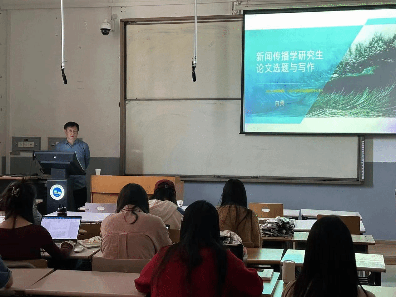 5月13日上午,河北大學特聘教授、坤輿優秀學者、中國新聞史學會少數民族新聞傳播史專業委員會理事長、河北大學跨文化傳播研究中心主任白貴教授為師生們帶來題為《新聞傳播學研究生學位論文的選題和寫作》的講座,本次講座由新聞傳播學院馬小龍副教授主持。