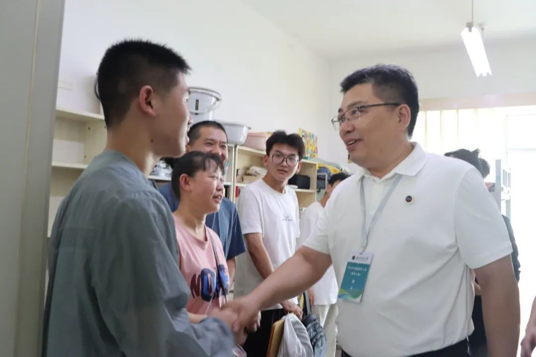 在走訪中,徐紹文代表學校對新生的到來表示熱烈歡迎和祝賀,并同新生及家長進行了親切交流,關切詢問新生入學報到情況、到校后學習生活安排等情況,叮囑同學們在學習、生活中要加強交往交流交融,相互尊重、相互包容,共同進步。鼓勵同學們盡快轉變角色,適應大學的學習生活環境,提前制定學習規劃,快速進入學習狀態;要及時調整作息時間,以樂觀開朗的心態迎接新的校園生活,爭做有理想、敢擔當、能吃苦、肯奮斗的新時代好青年。徐校長和家長“拉家常、聊近況”,并針對家長們所關心的衣食住行、人才培養等做了深入交流,請家長們放心將孩子交到學校,學校將努力將孩子培養成德智體美勞全面發展的社會主義建設者和接班人。