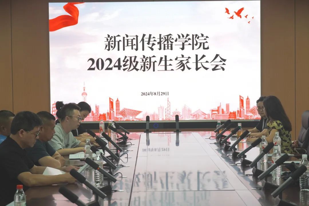 為貫徹落實立德樹人根本任務,加強家校聯動,凝聚育人合力,全方位服務學生成長成才,全面推進三全育人。8月29日下午,新聞傳播學院舉行2024級新生家長見面會,新聞傳播學院黨委書記趙新梅、黨委副書記馬月香,全體輔導員、新生班導師,2024級新生家長共100余人參加會議。會議由學生工作辦公室副主任馬曉媛主持。